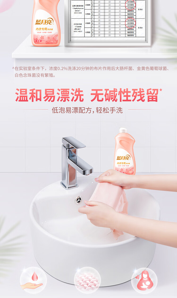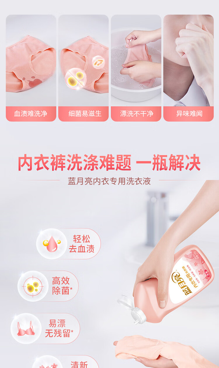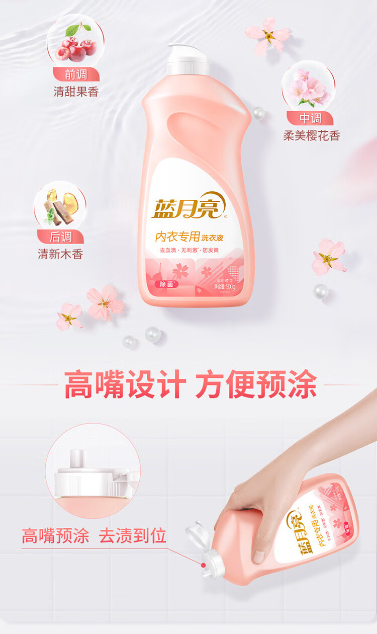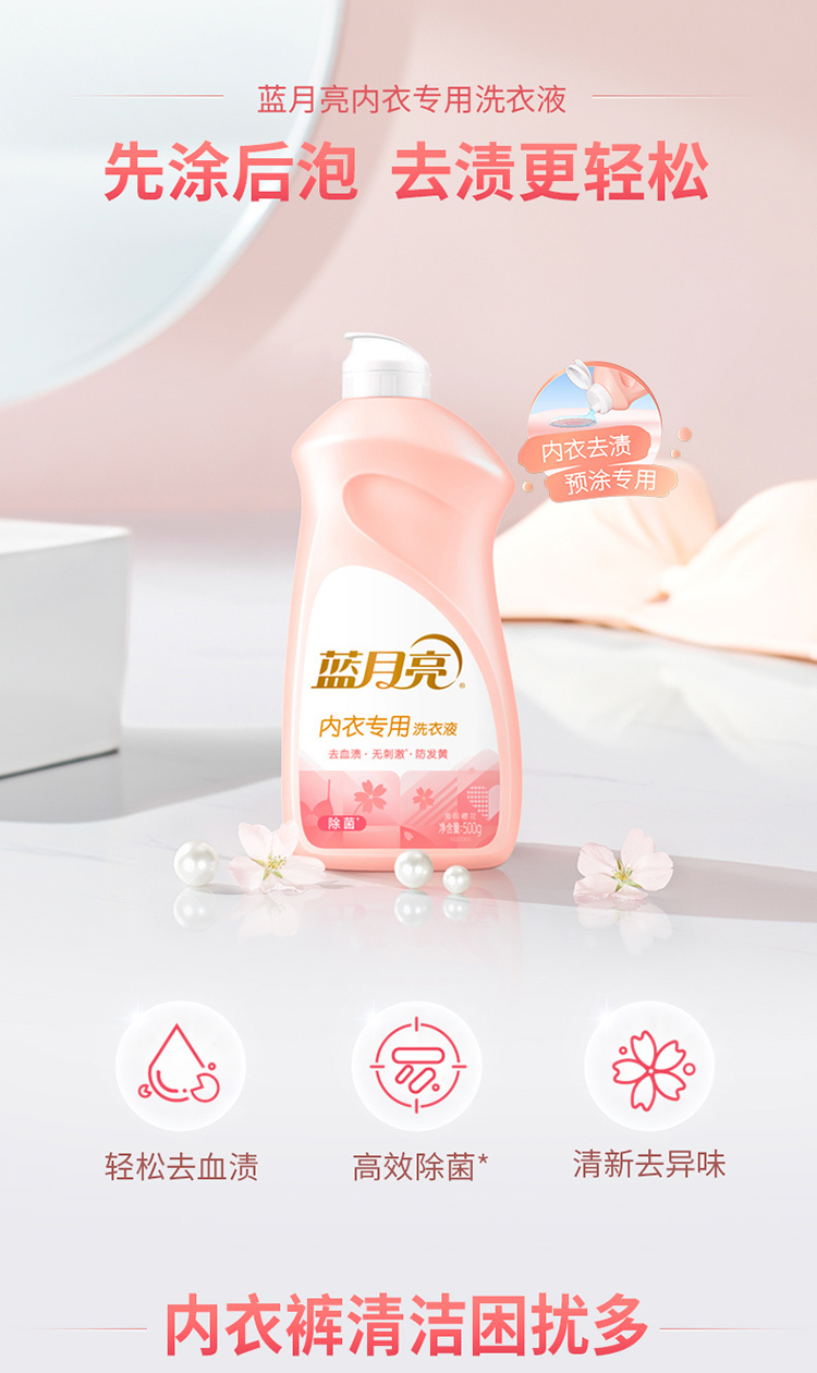 蓝月亮 柔润樱花内衣专用洗衣液 泵装500g+翻盖装500g 2瓶 1套