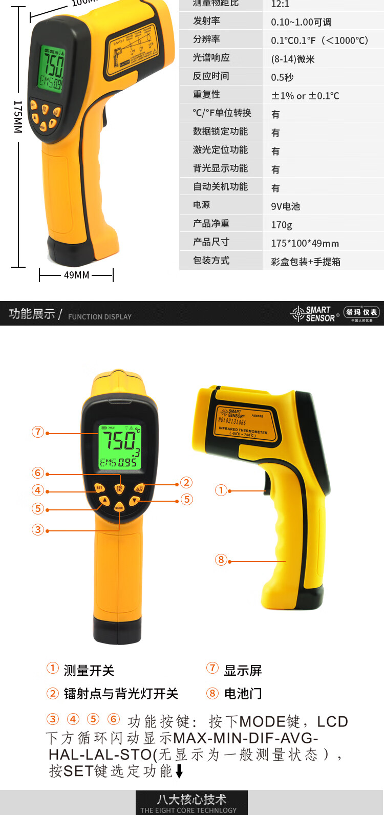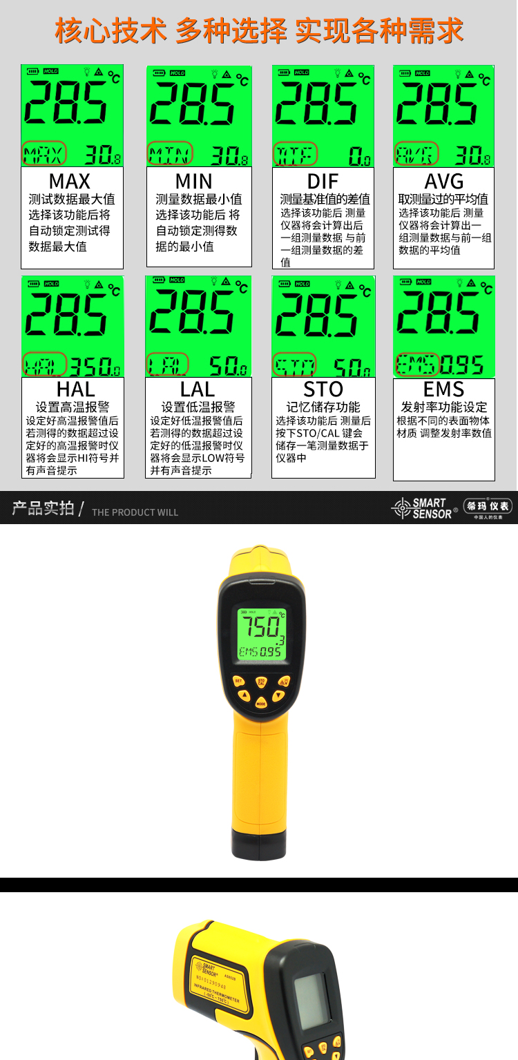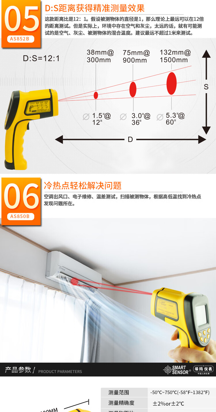 希玛 红外线测温仪 AS852B -50~750℃ 1台