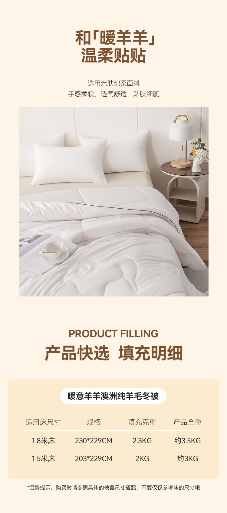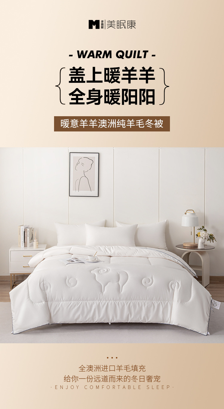 美眠康 保暖被芯冬被礼品 229*230cm 澳洲纯羊毛冬被 1个