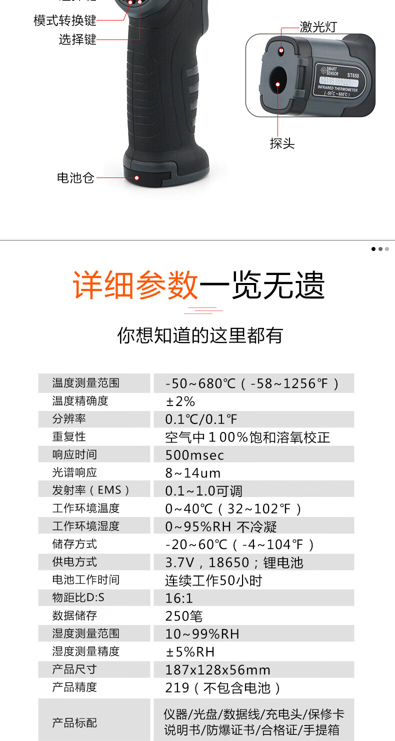 希玛 工业级红外线测温仪 -50~680℃ ST650 1台