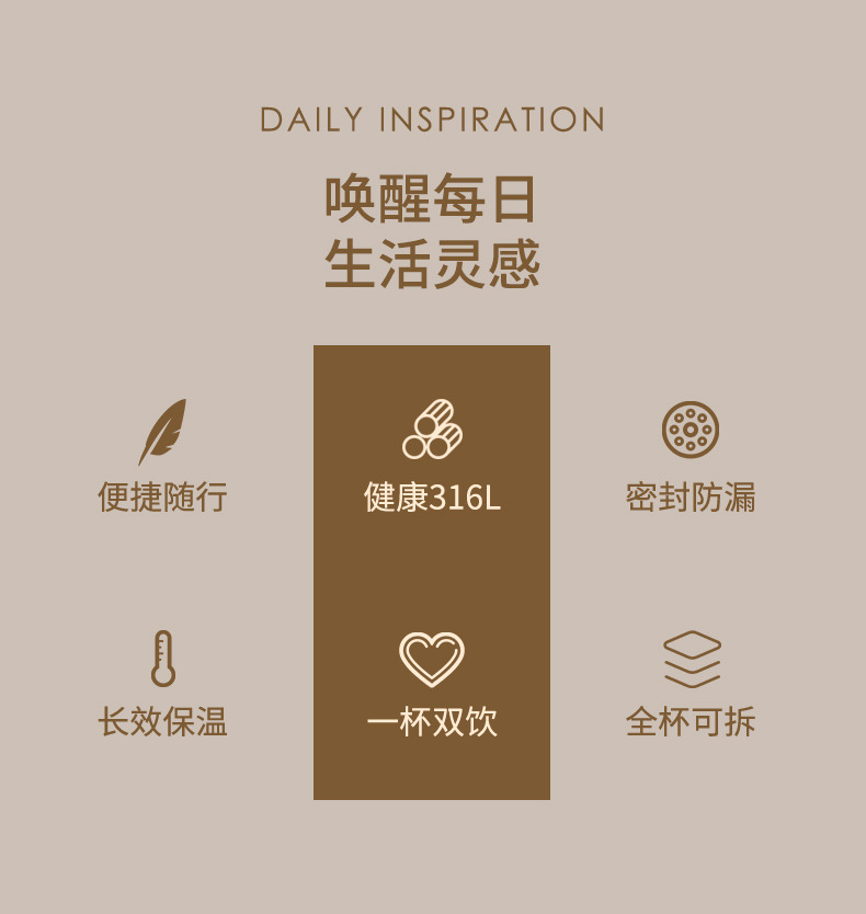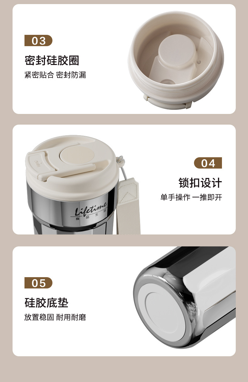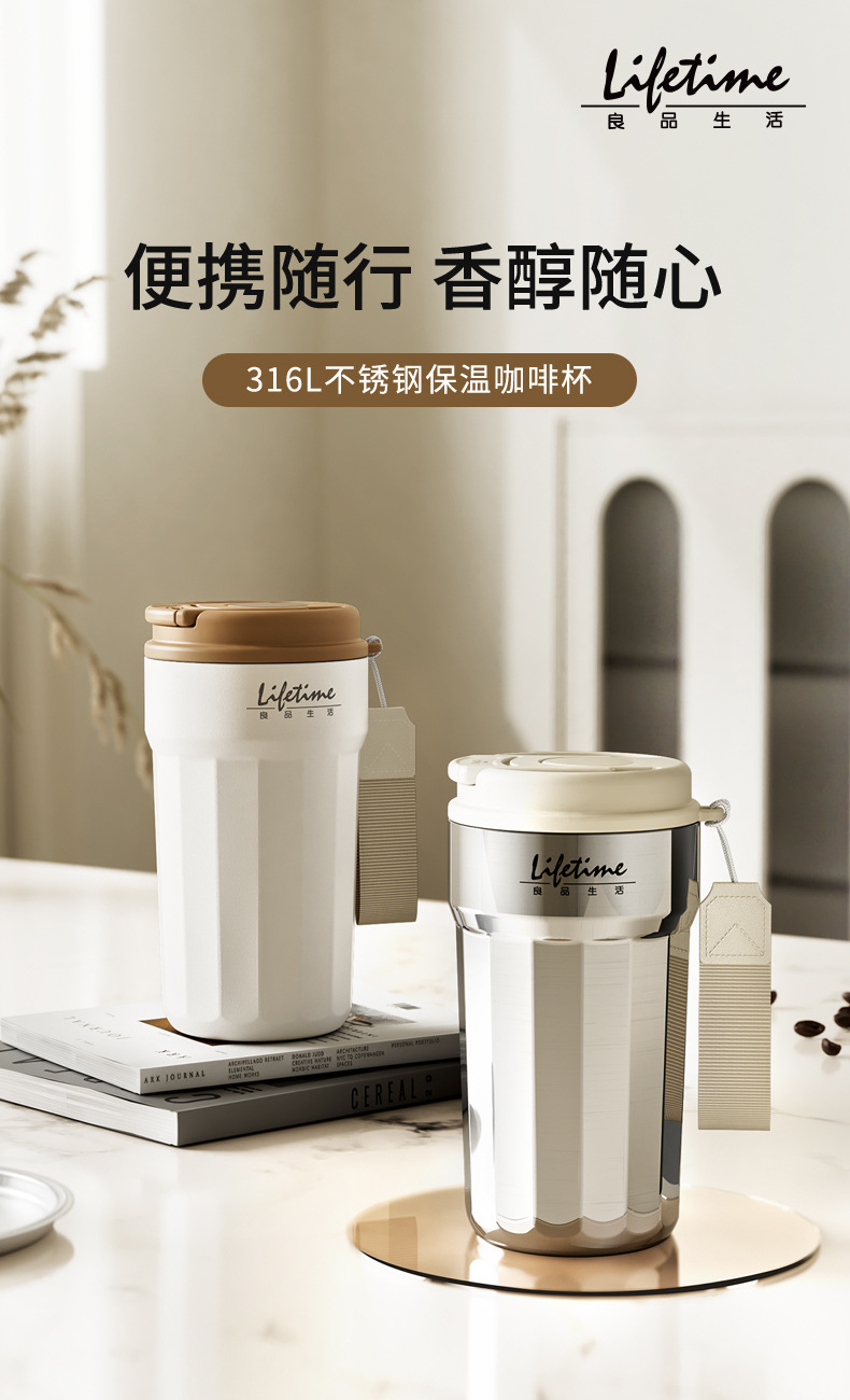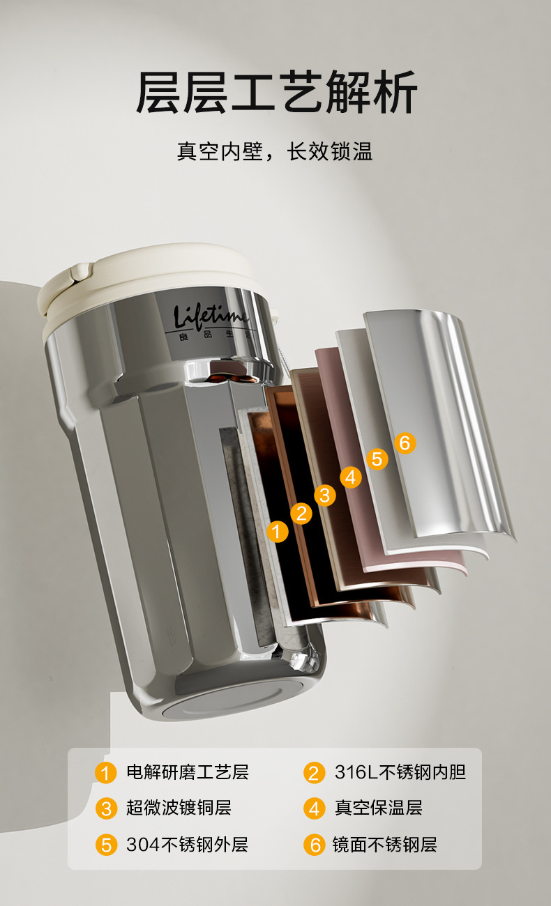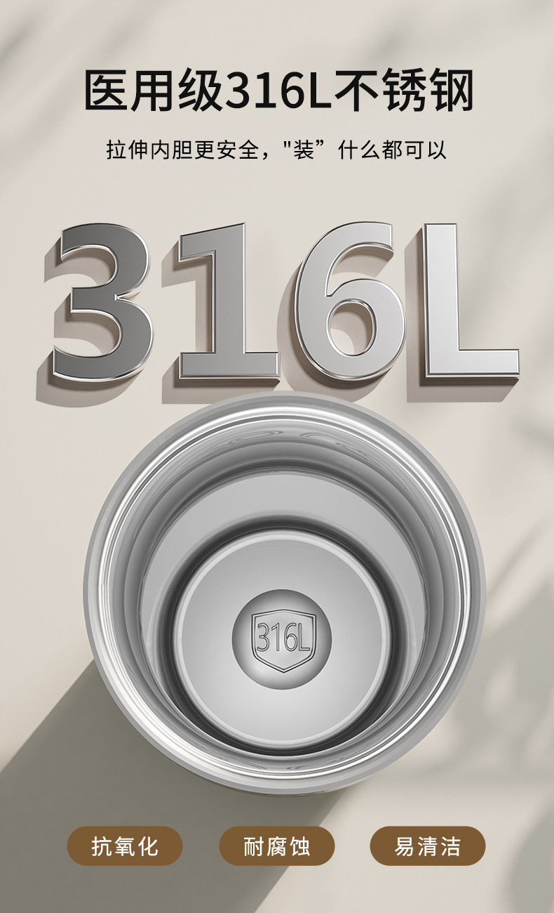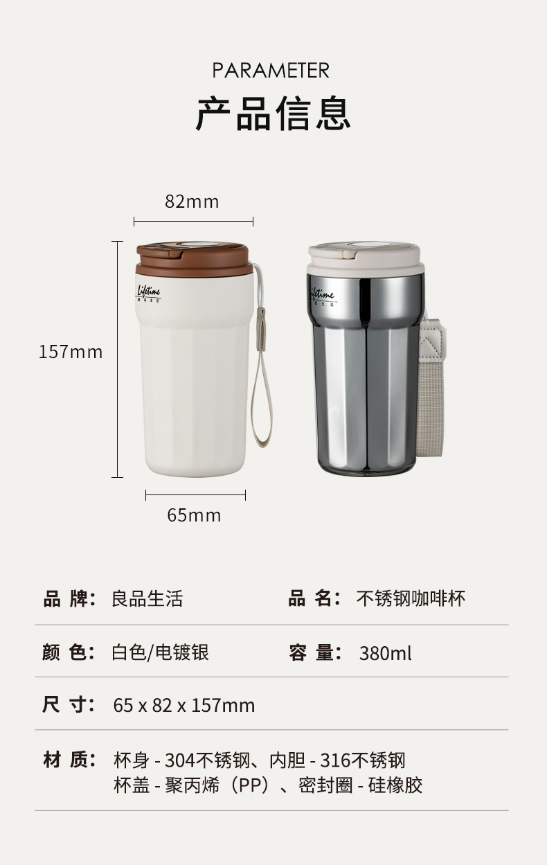 良品生活 316L不锈钢保温杯 380mL 电镀银 1个