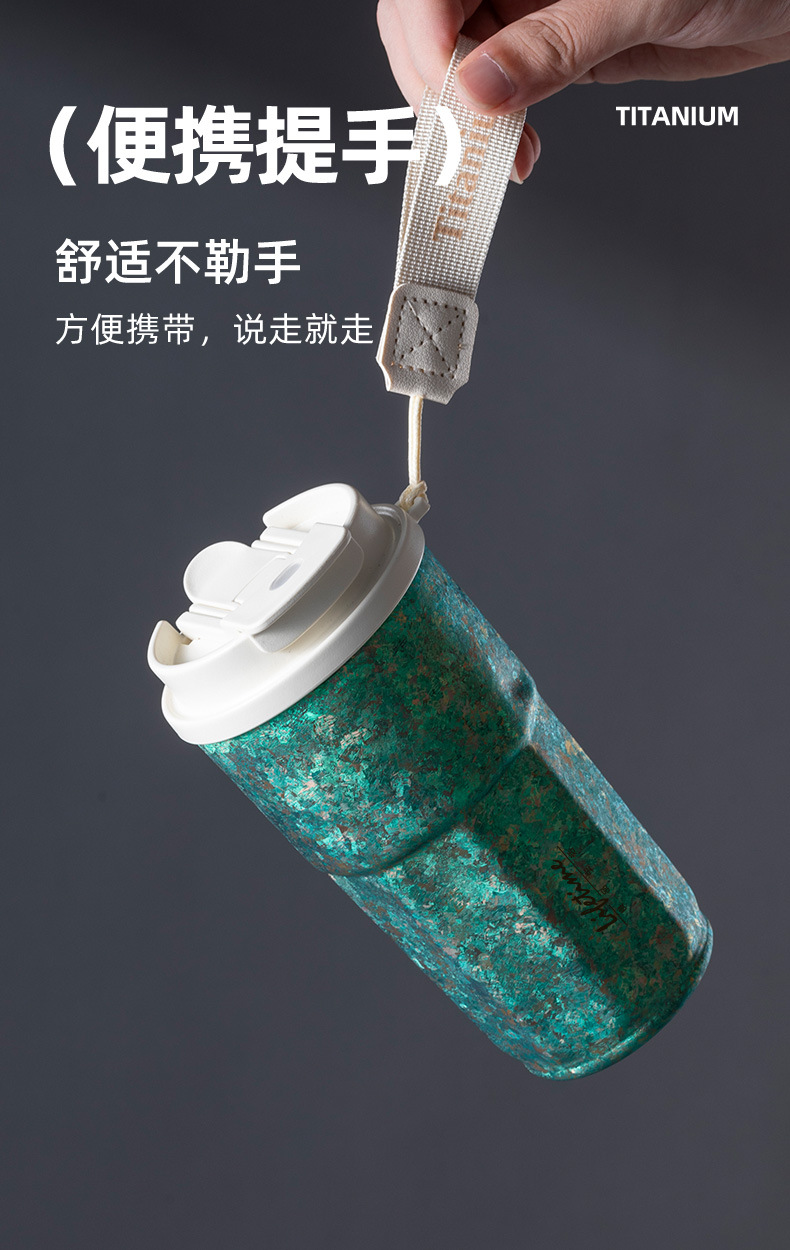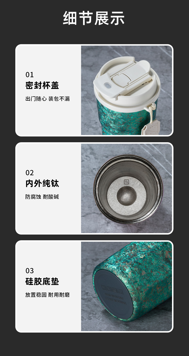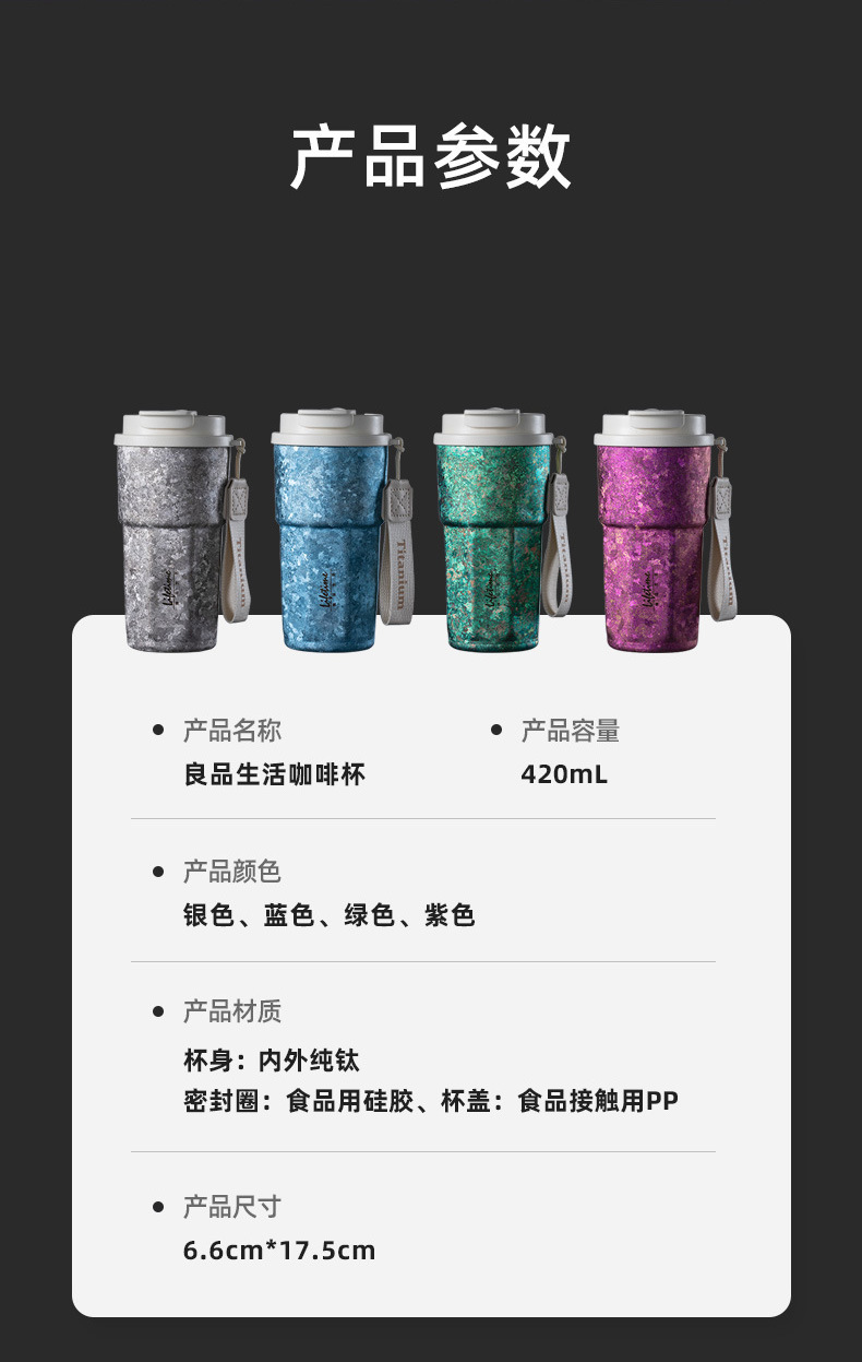 良品生活 保温咖啡杯礼盒 420mL 内外纯钛橄榄绿 1个