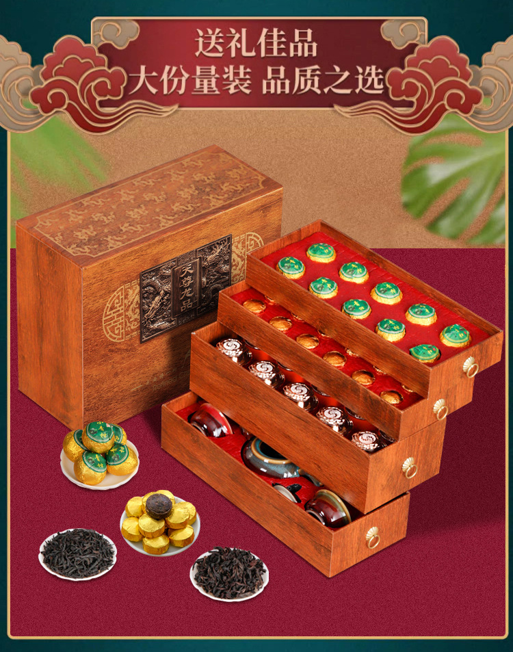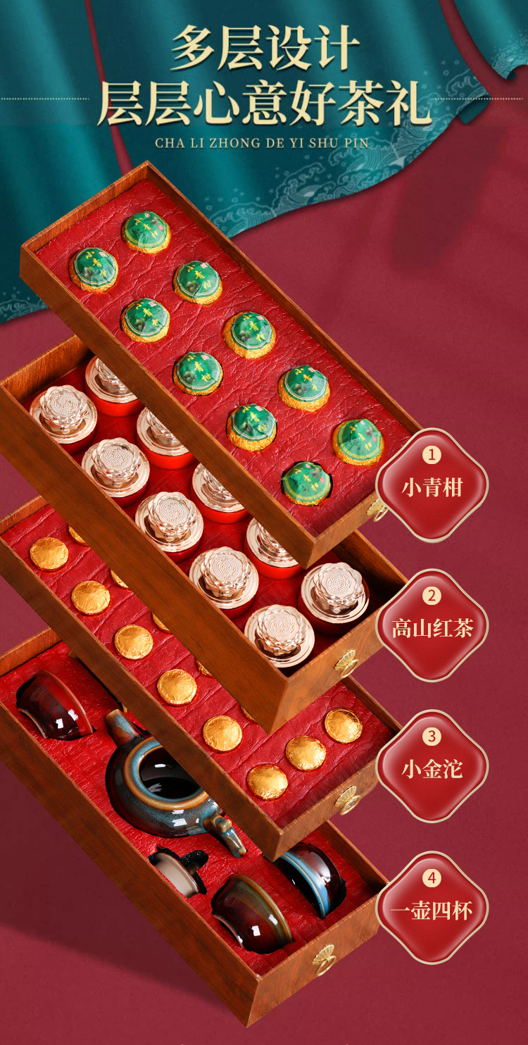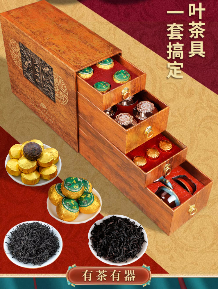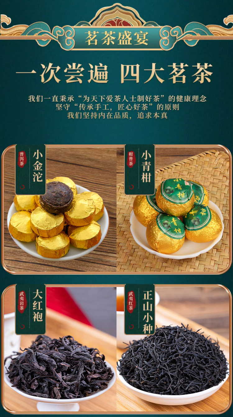 博馨 龙腾盛世四大茗茶套装 小青柑+小沱茶+正山小种+大红袍+一壶四杯 1套