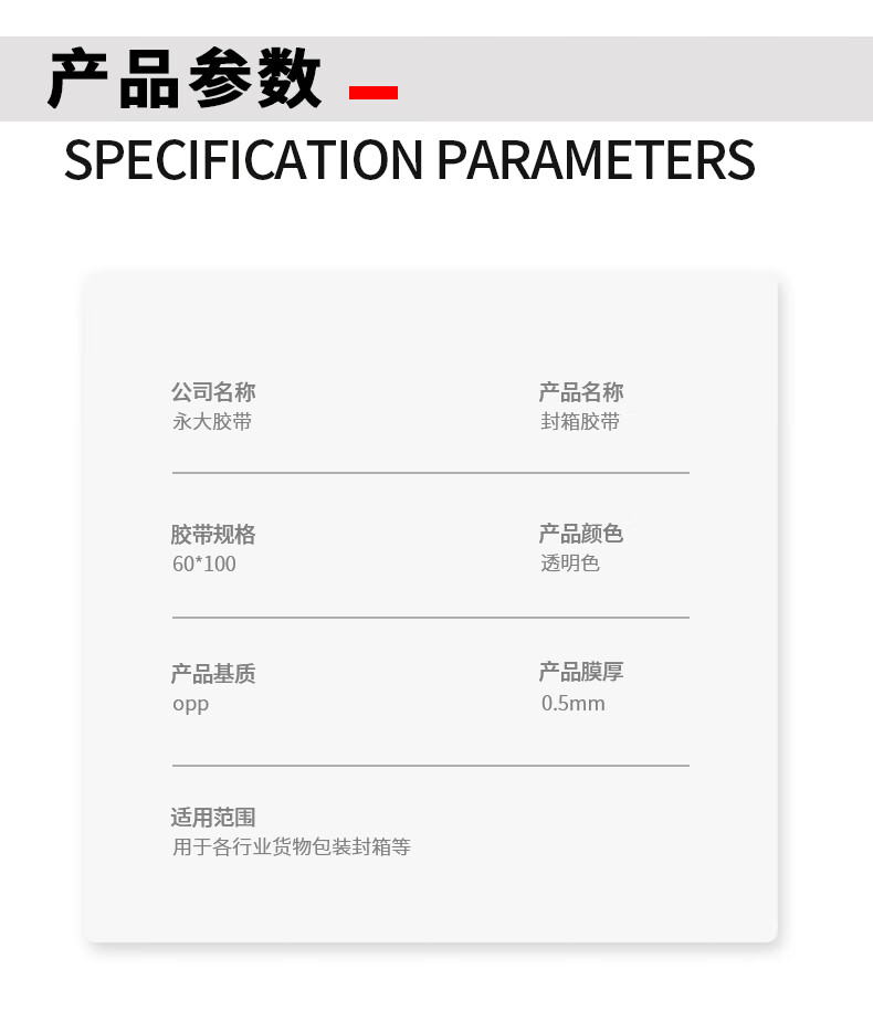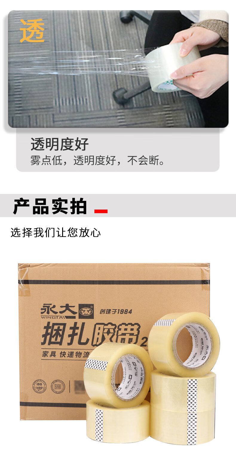 永大 透明封箱胶带 实用型2.0 50mm×100m 1卷