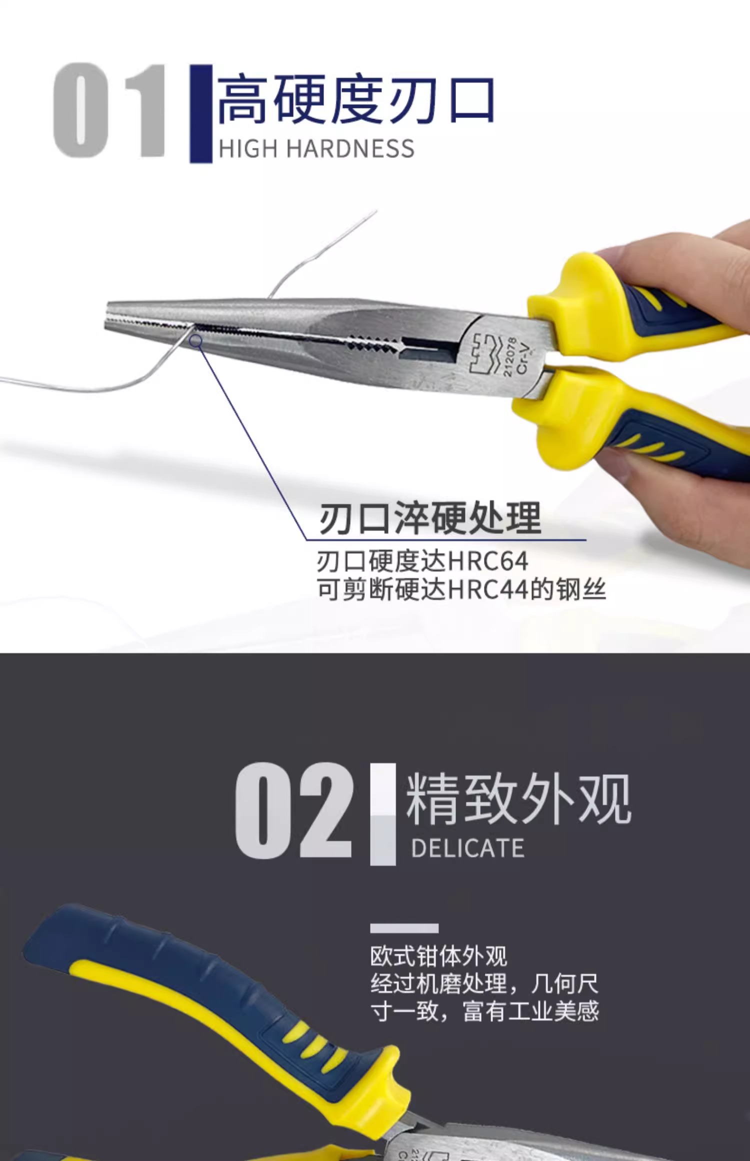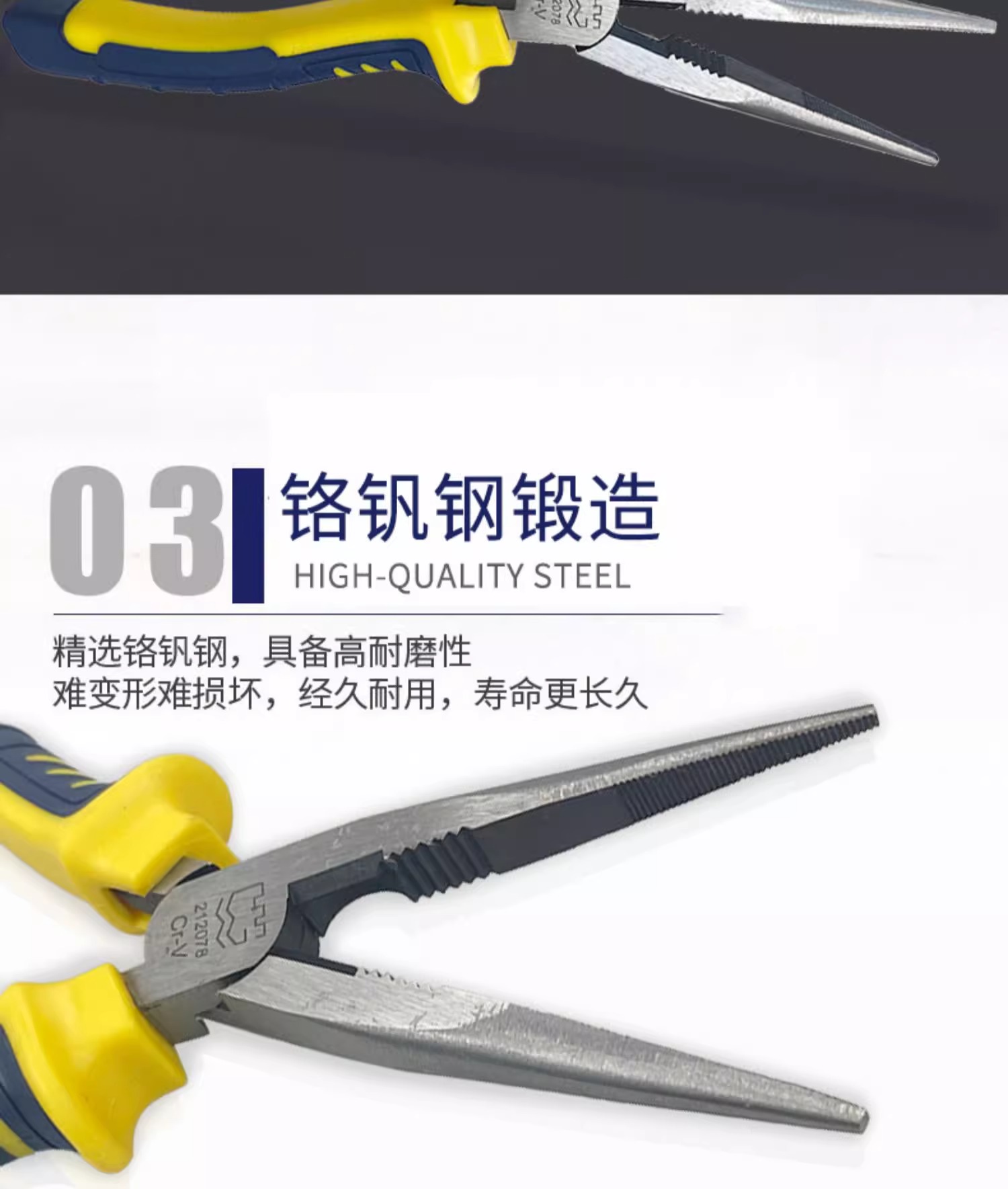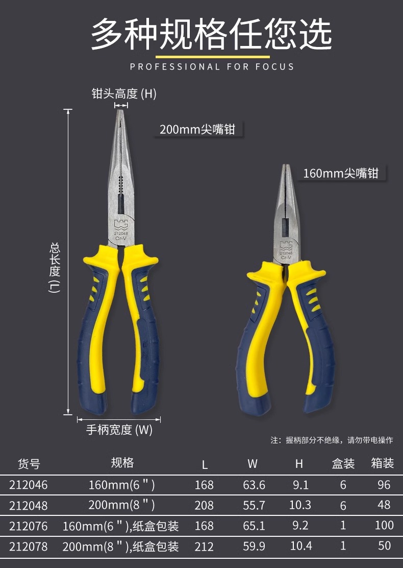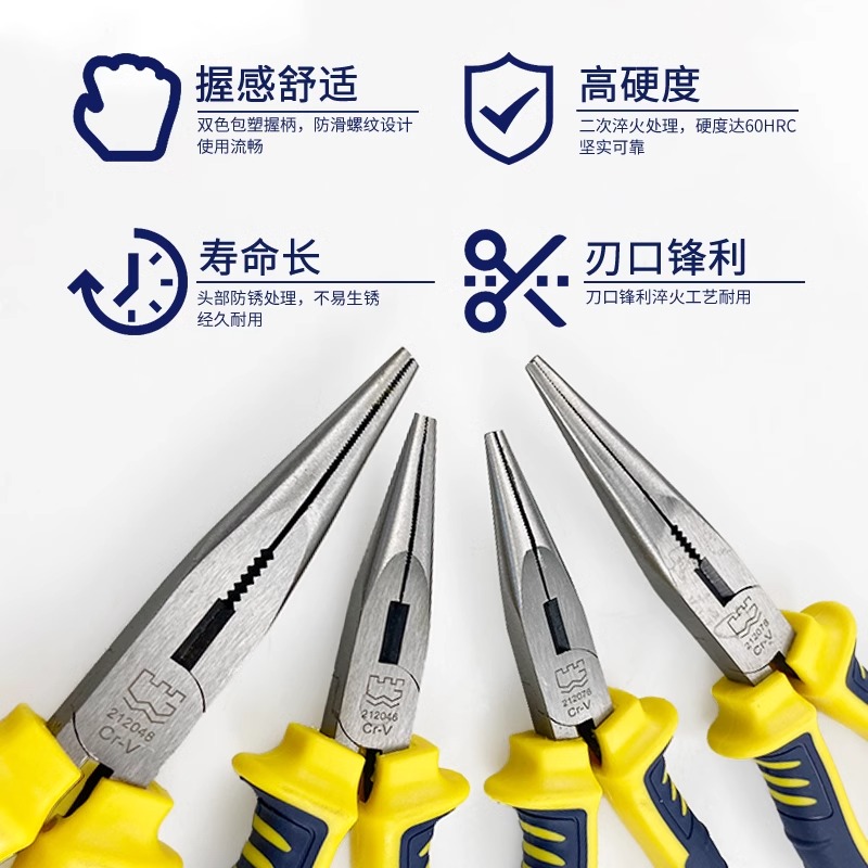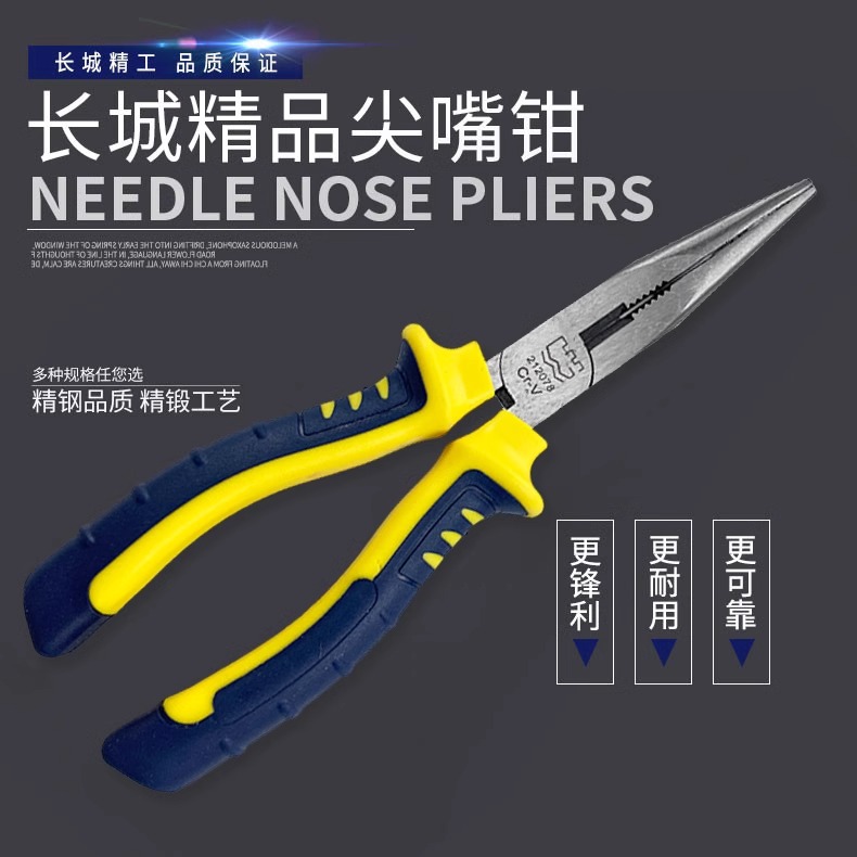 长城精工 欧式精抛双色套塑柄尖嘴钳 212076 Cr-V 160mm(6") 1把