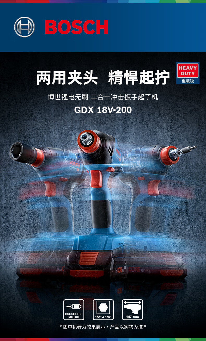 博世 充电式无刷锂电两用冲击扳手 GDX 18V-200 18V 4Ah 两电一充 1台