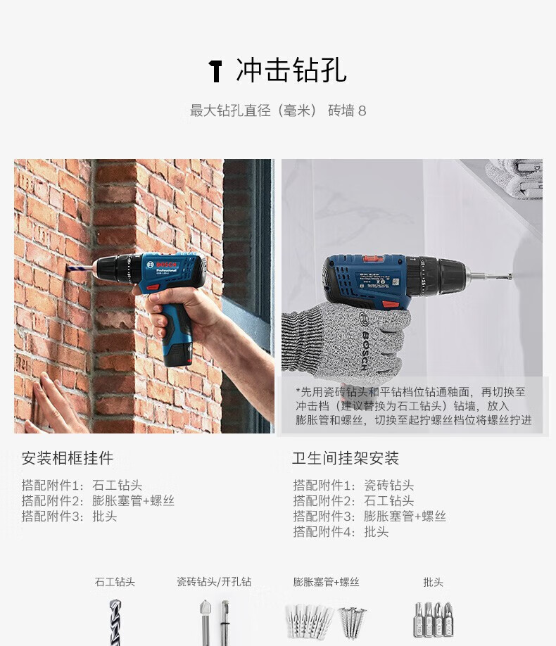 博世 充电式锂电钻套装 GSB 120-LI 12V 2.0Ah 一电一充 1把