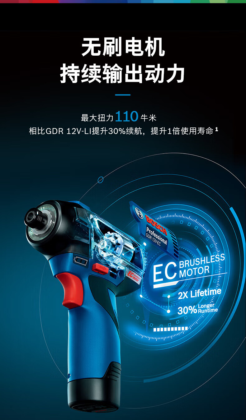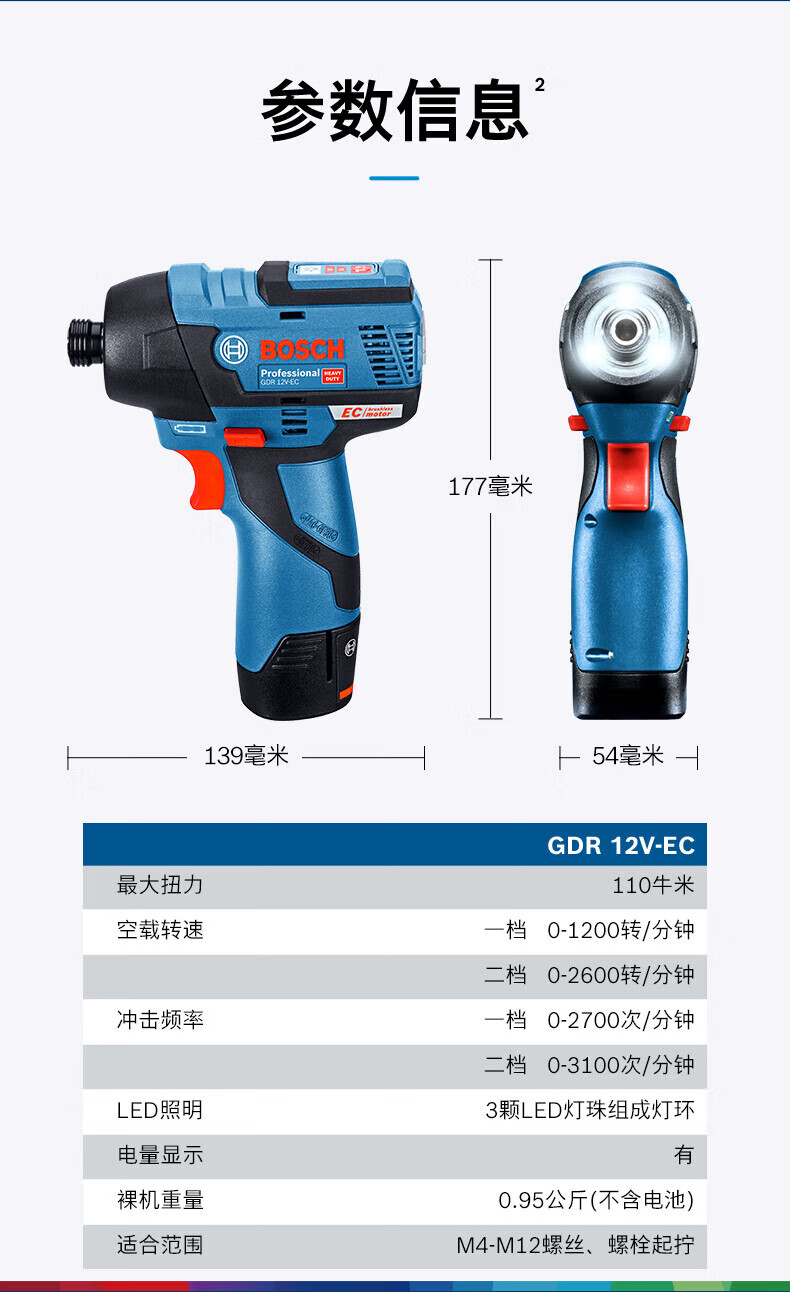 博世 充电式无刷锂电两用冲击扳手 GDS 12V-EC 12V 3.0Ah 两电一充 1台