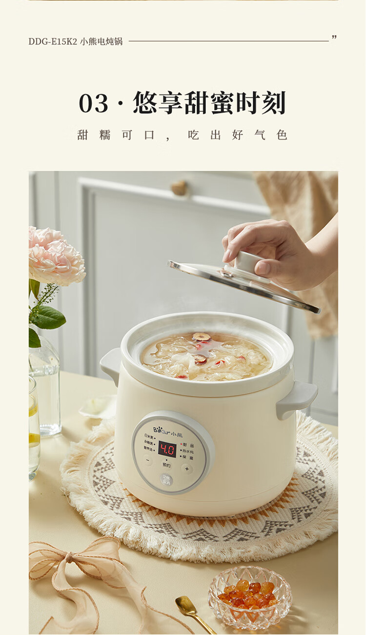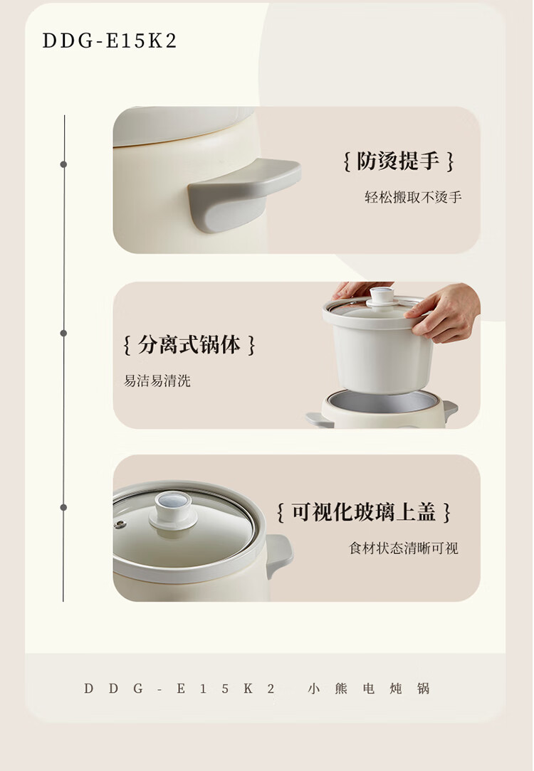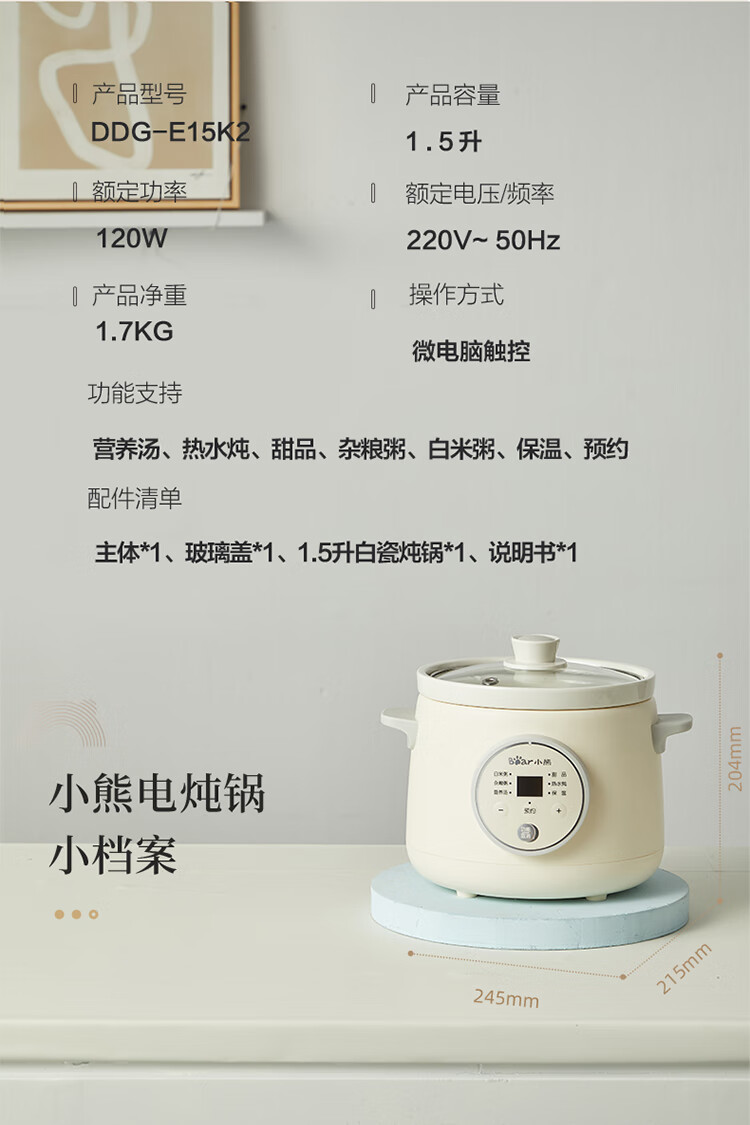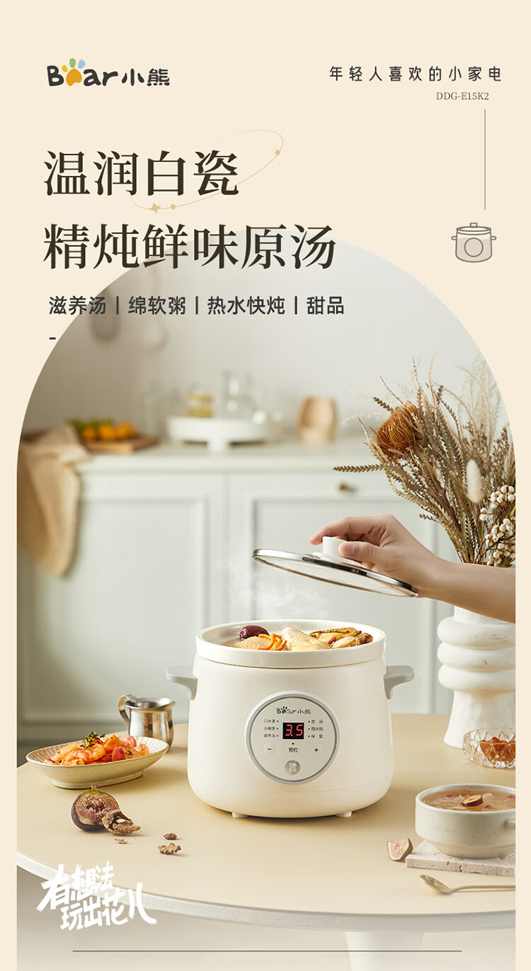 小熊 温润白瓷电炖锅 DDG-E15K2 白色 1.5L 1个