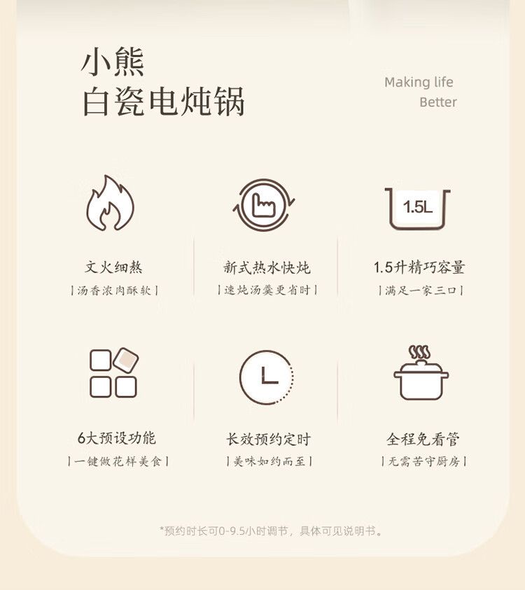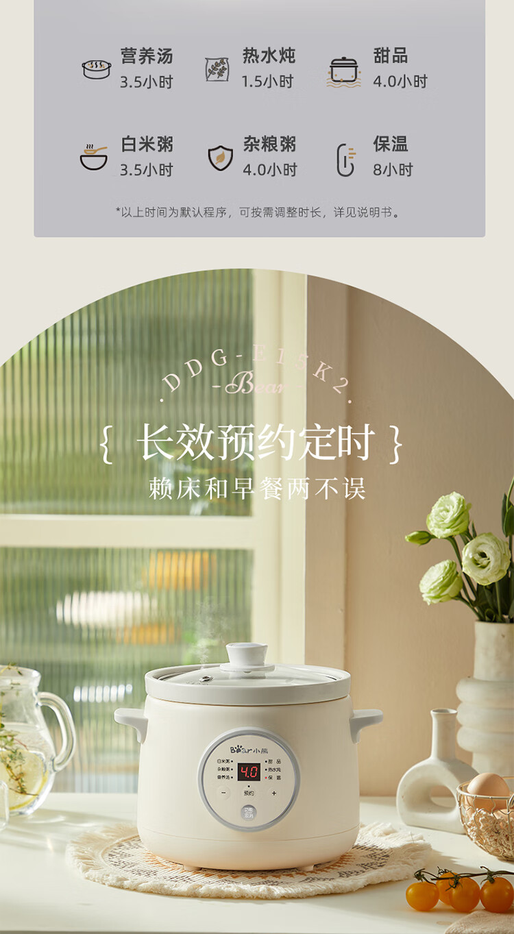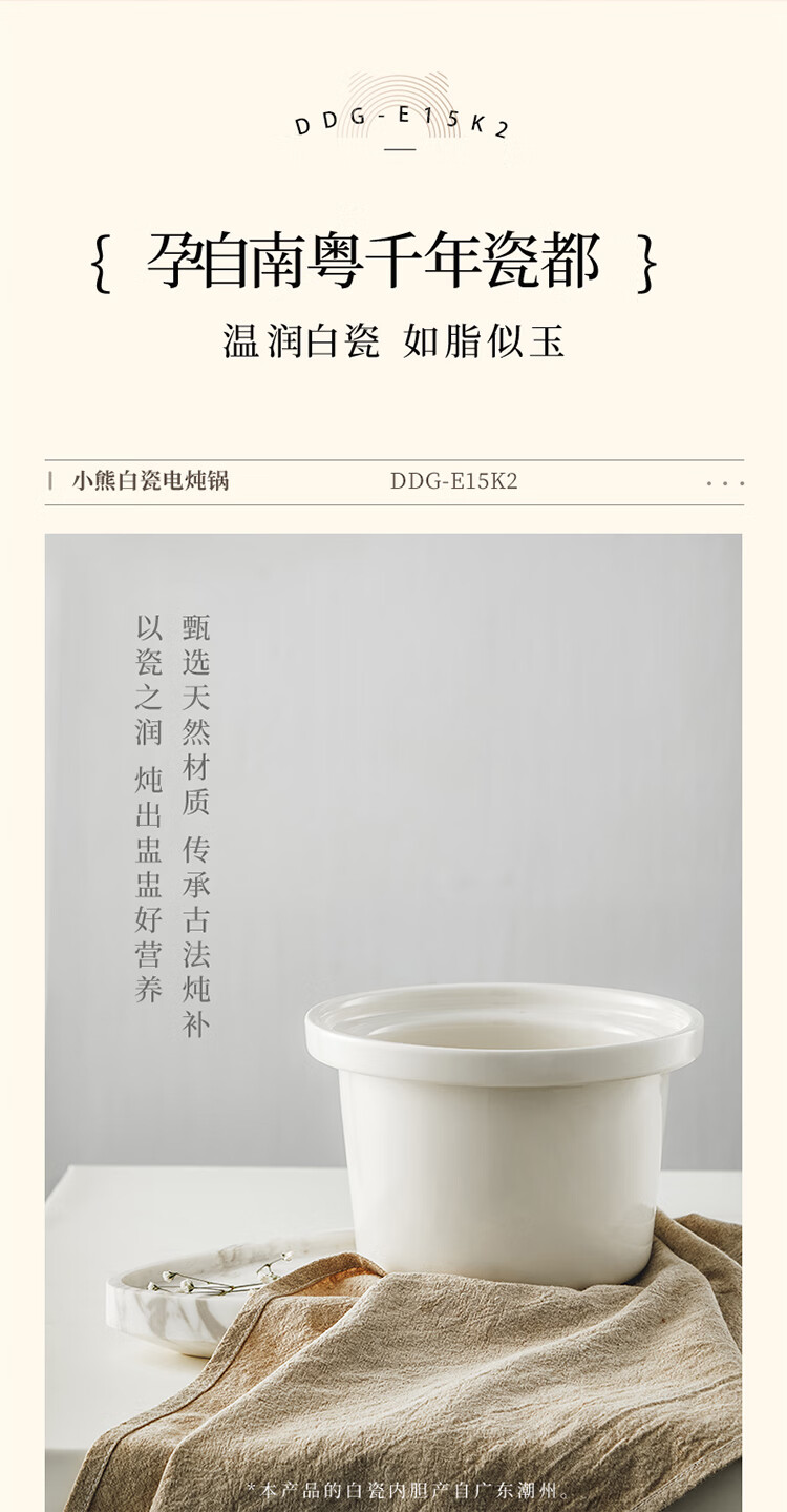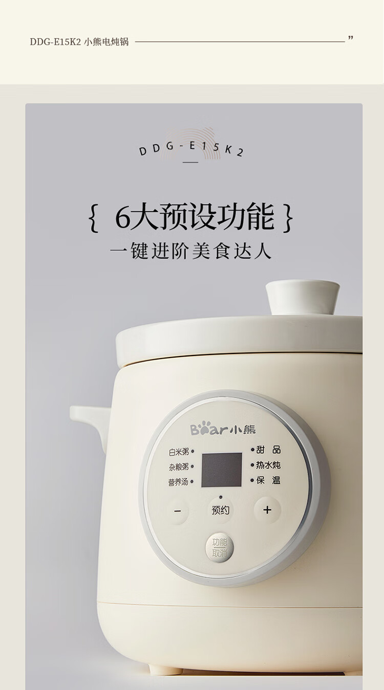 小熊 温润白瓷电炖锅 DDG-E15K2 白色 1.5L 1个
