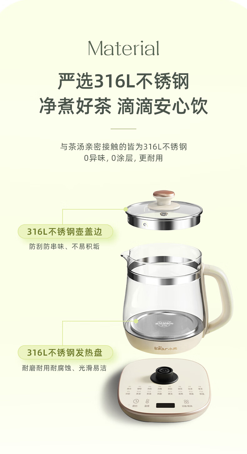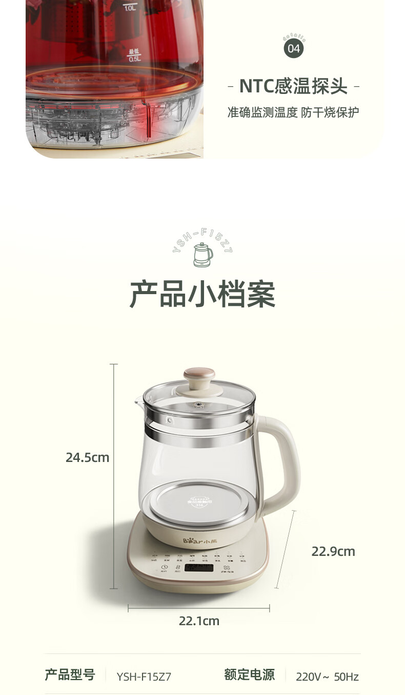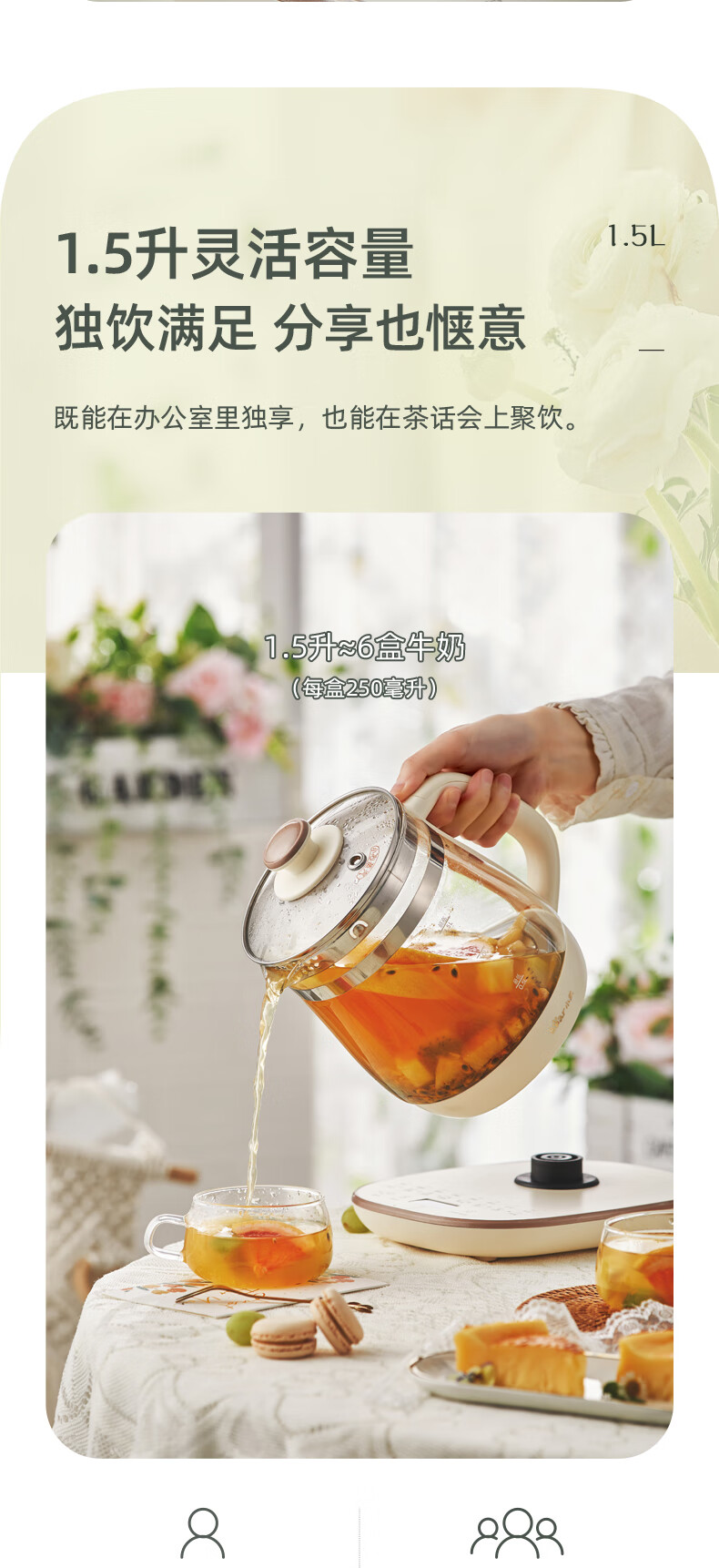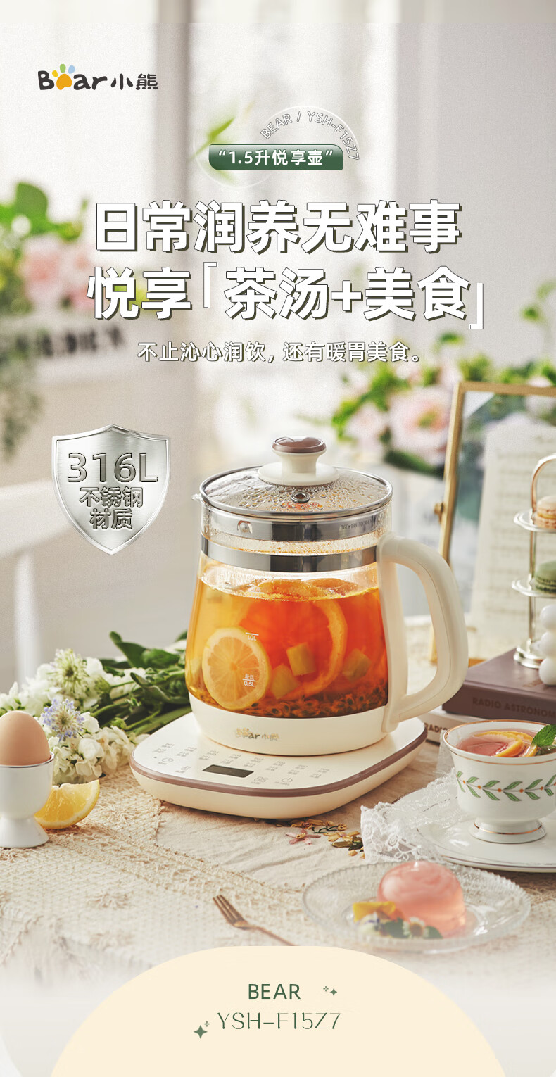 小熊 全自动恒温花茶壶 YSH-F15H7 米白色 1.5L 1个