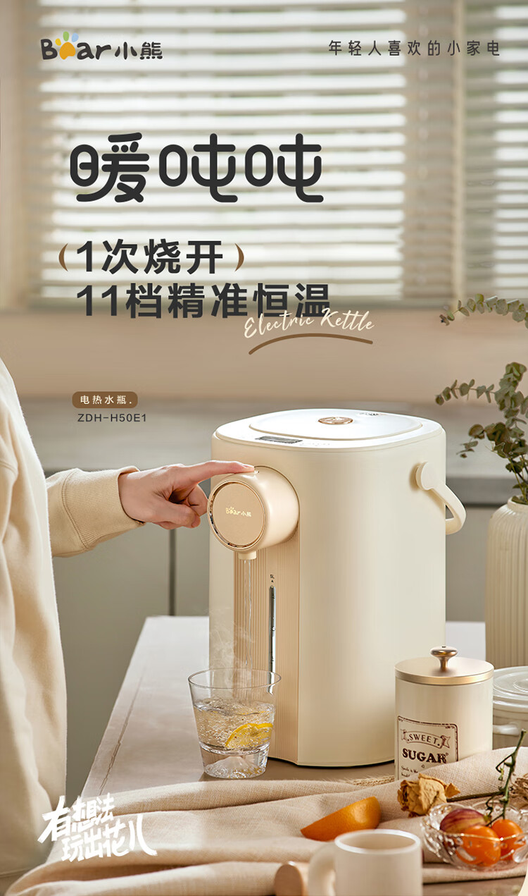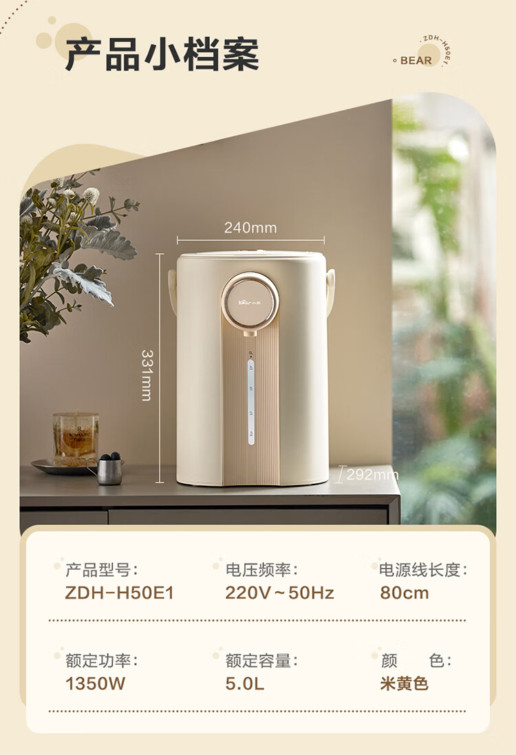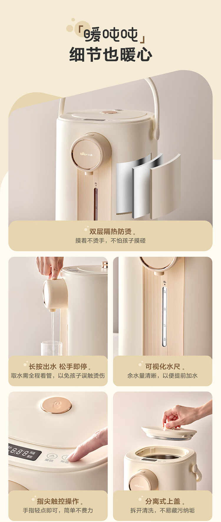 小熊 智能恒温电热水壶 ZDH-H50E1 米黄色 5L 1个