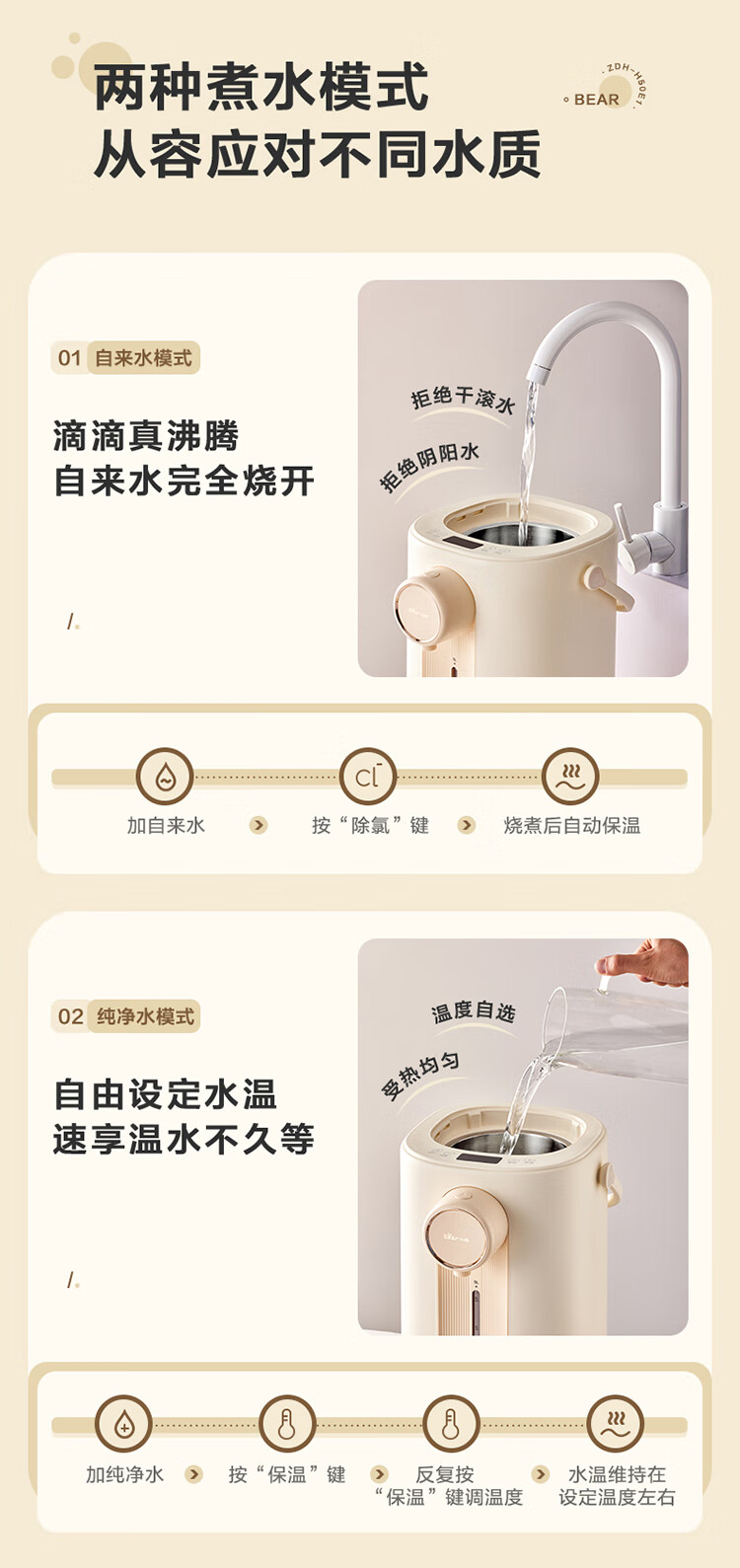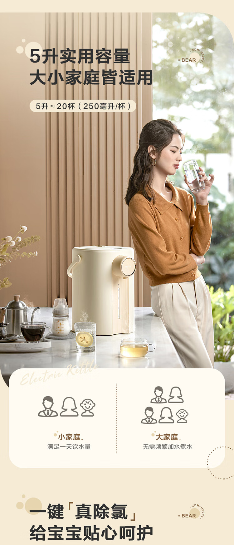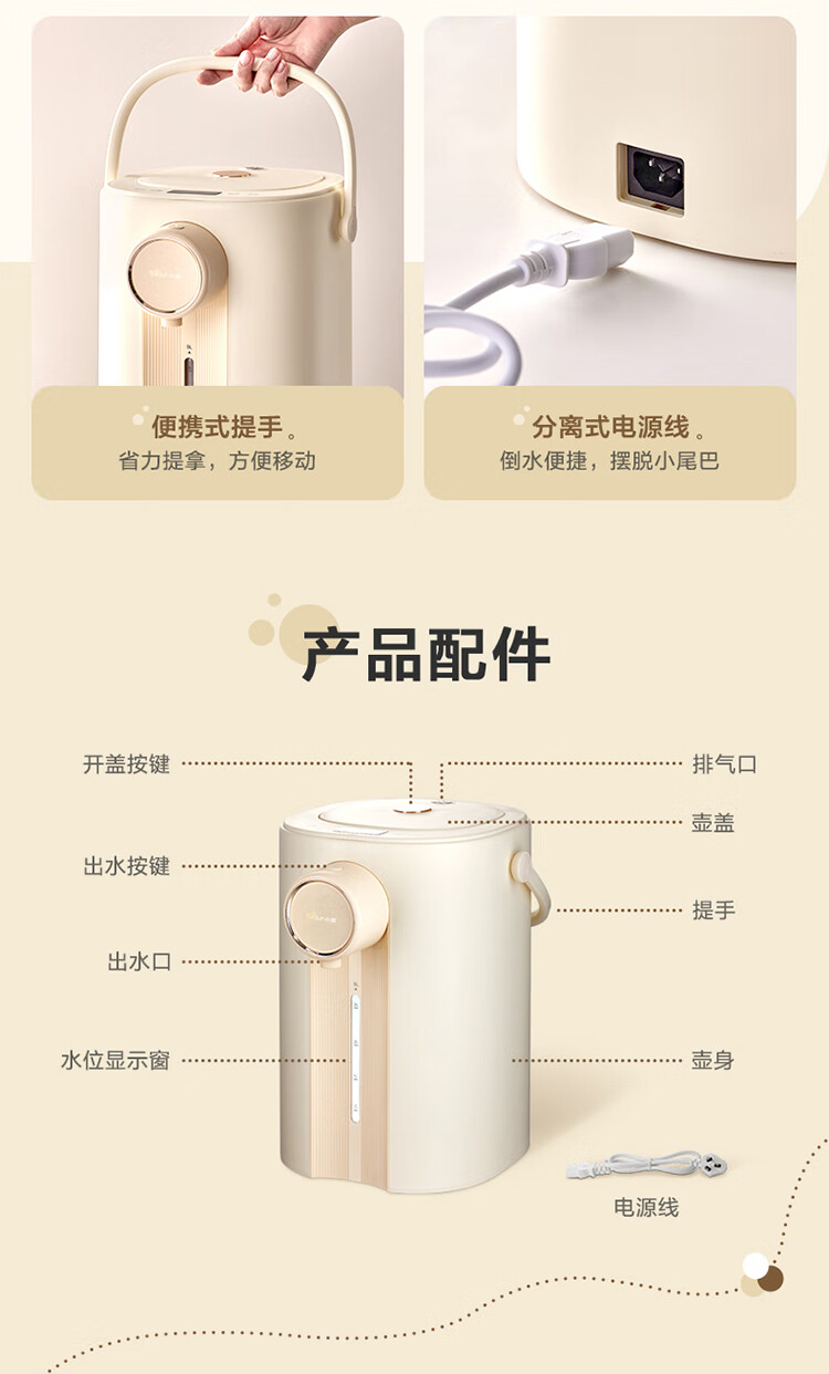 小熊 智能恒温电热水壶 ZDH-H50E1 米黄色 5L 1个