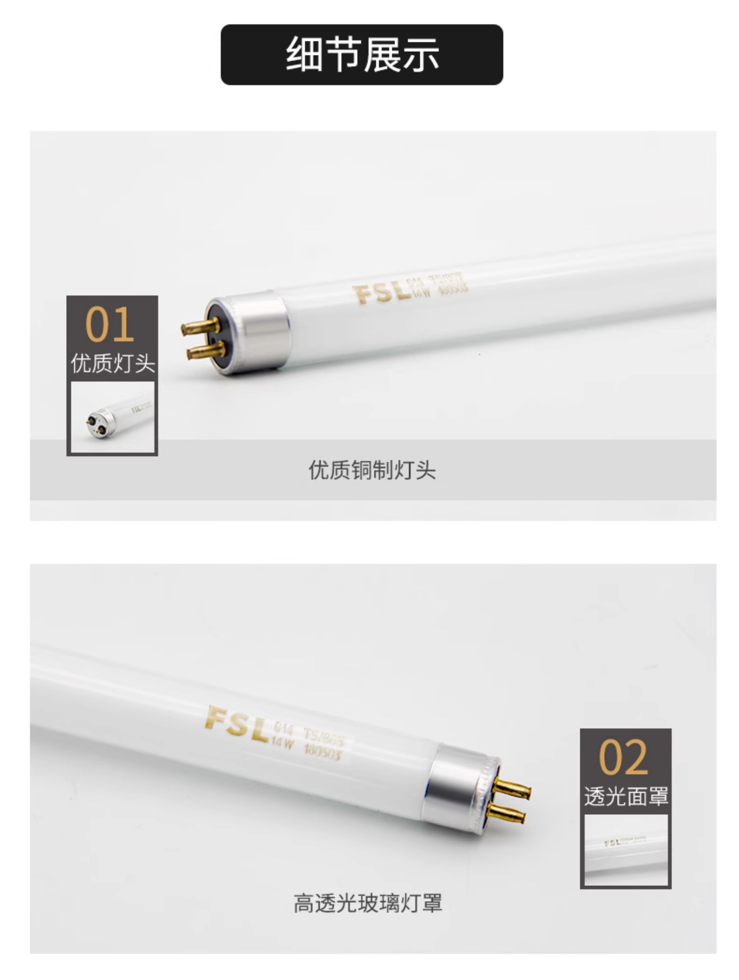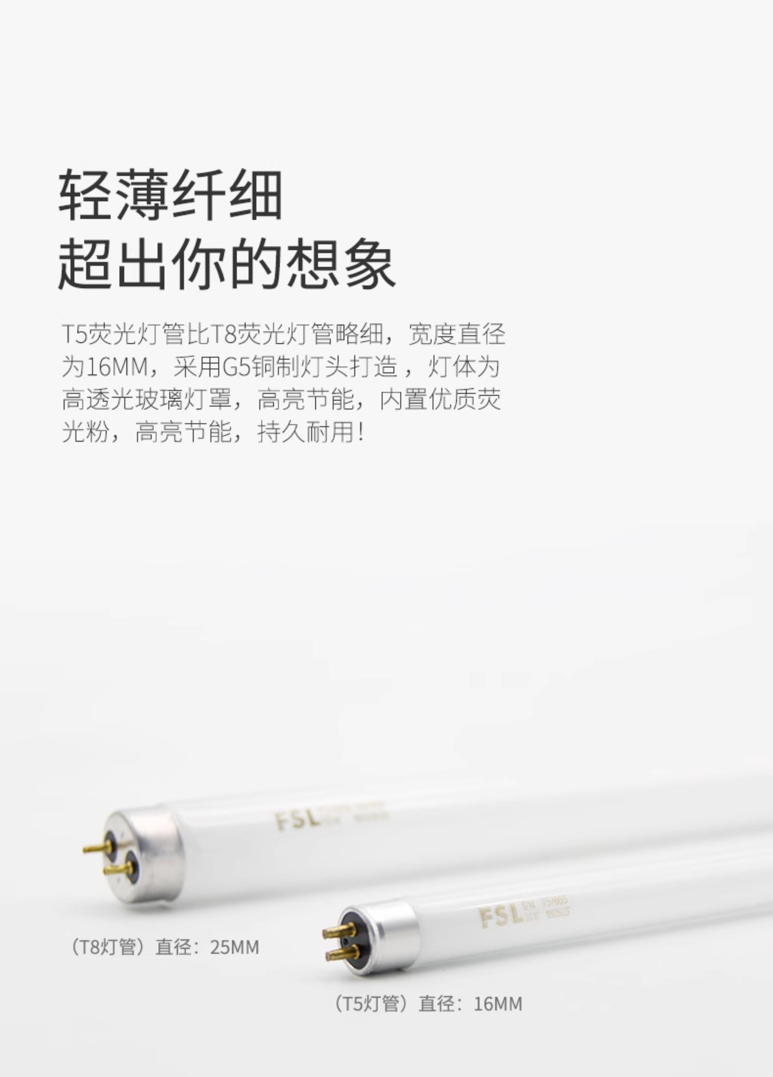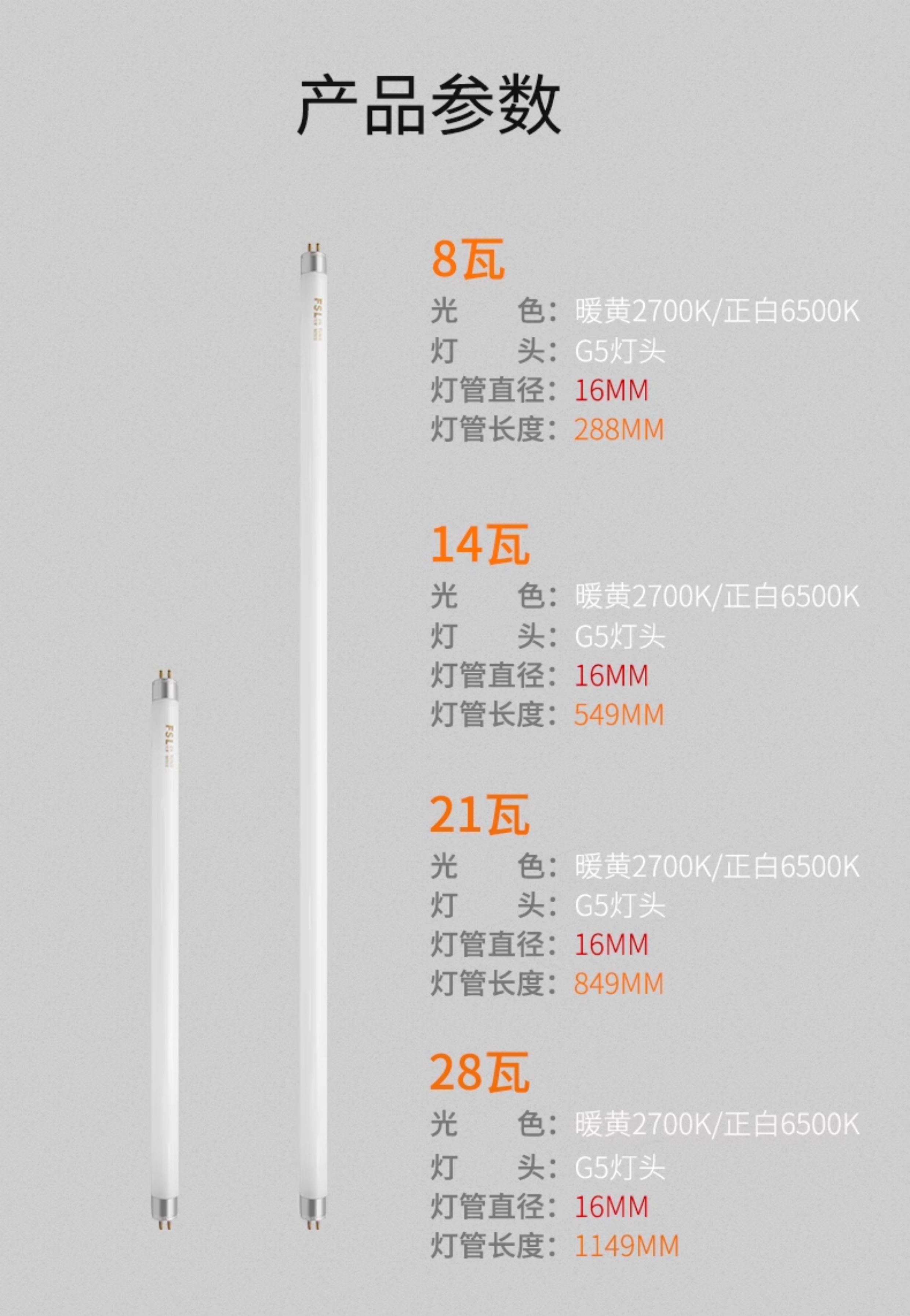 佛山照明 传统T5双端荧光灯管 白光 14W 0.6m 5支 1件