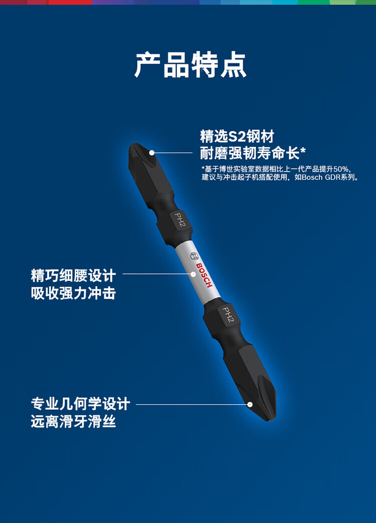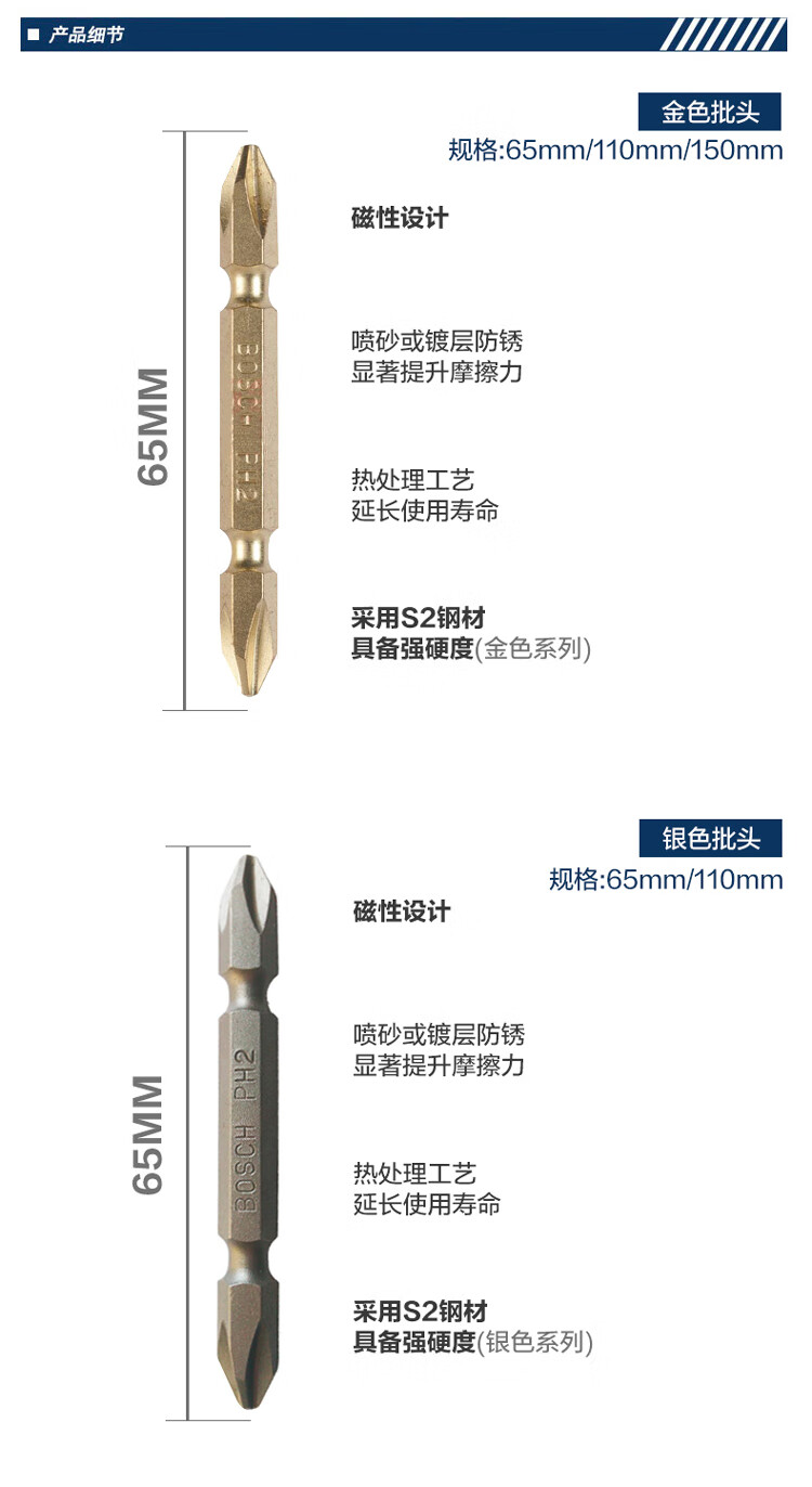 博世 双头螺丝批头 PH2/150mm 金色 5支 1包