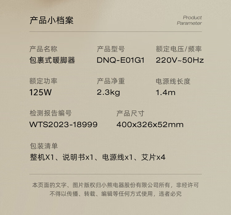 小熊 包裹式暖脚器 DNQ-E01G1 125W 1个