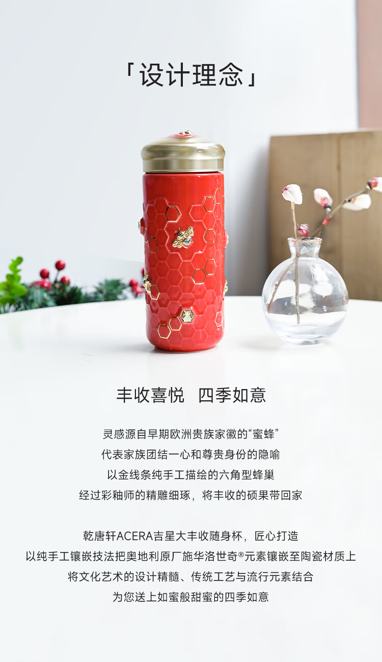 乾唐轩 吉星大丰收随身杯 牙白+鎏金+施华洛世奇®元素 双层 330mL 1个