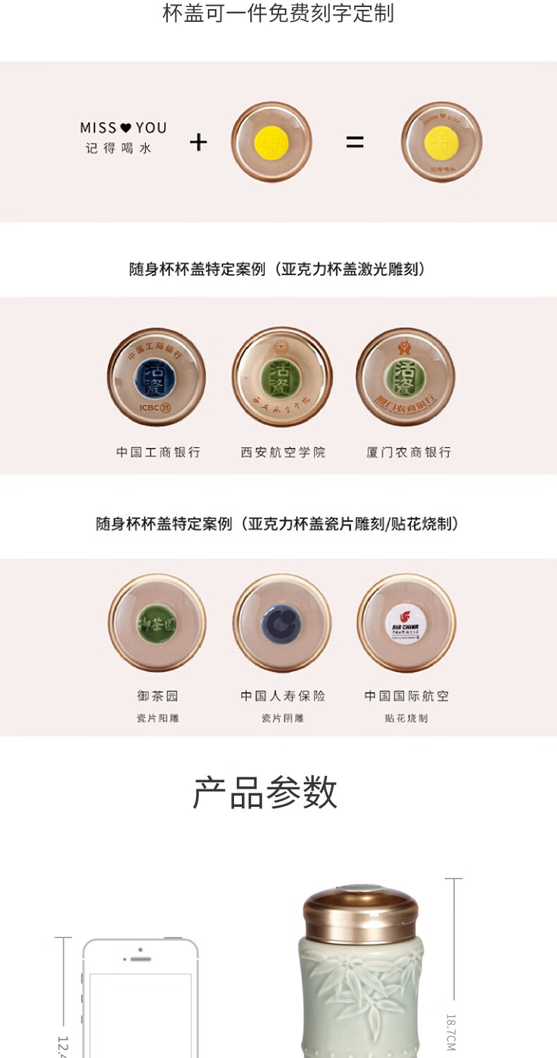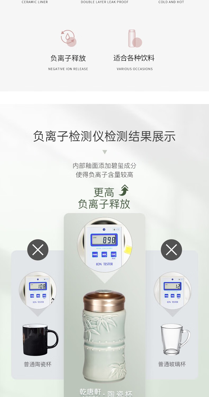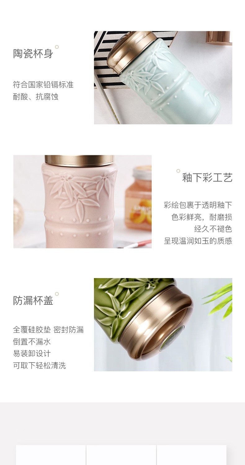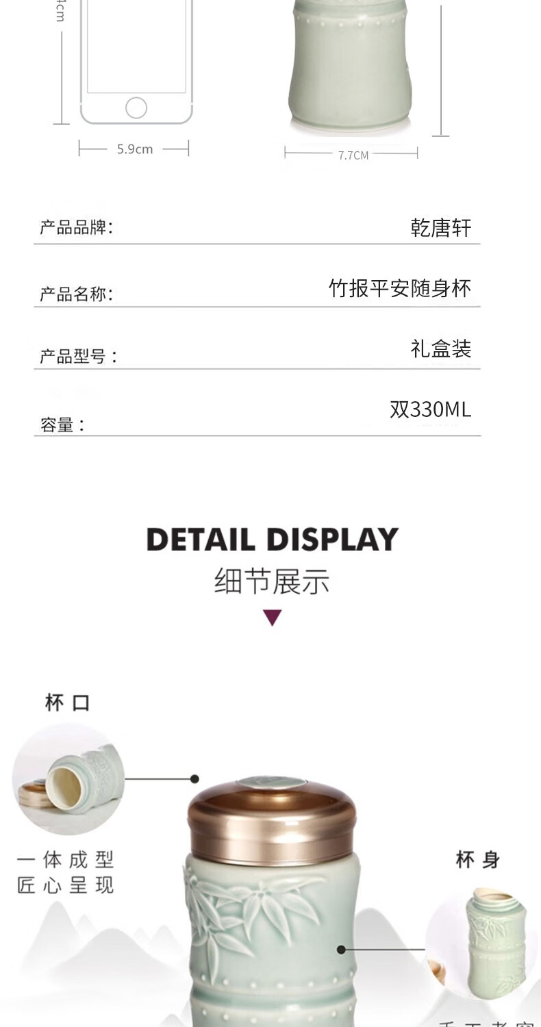 乾唐轩 竹报平安随身杯 耀州绿 双层 330mL 1个