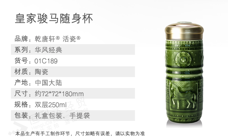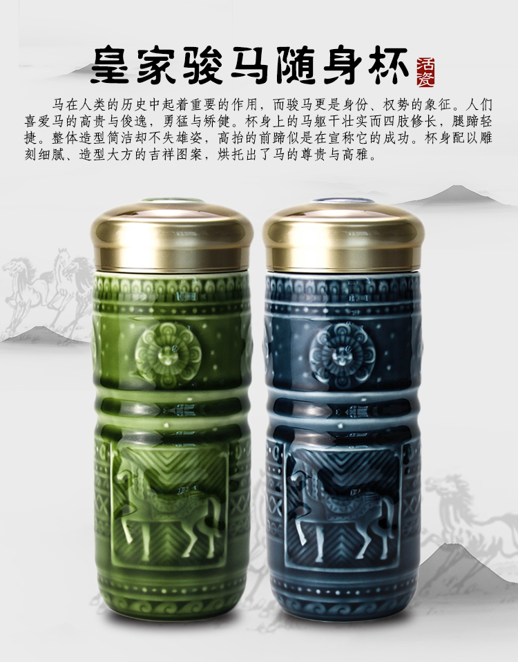 乾唐轩 皇家骏马随身杯 宝石蓝 双层 330mL 1个