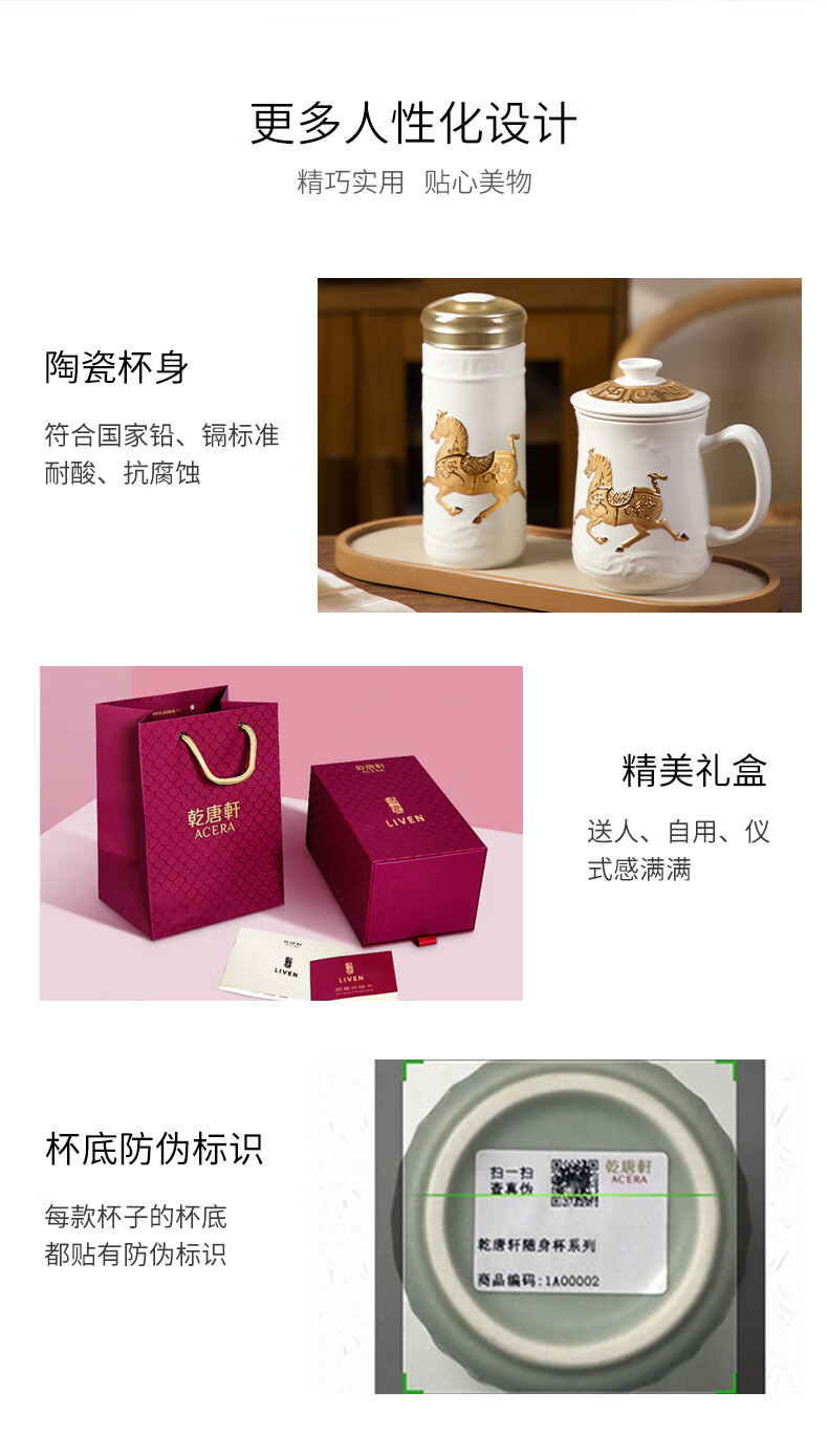乾唐轩 盛世宝马随身杯 牙白+手工彩釉+鎏金 双层 330mL 1个
