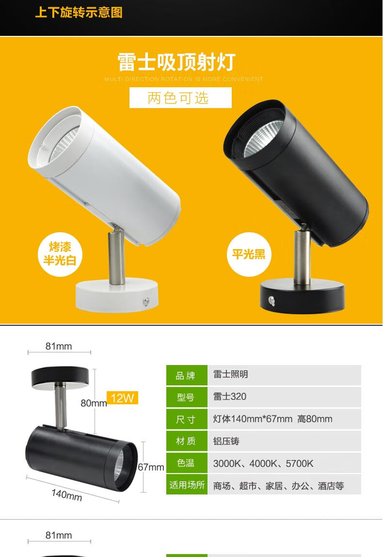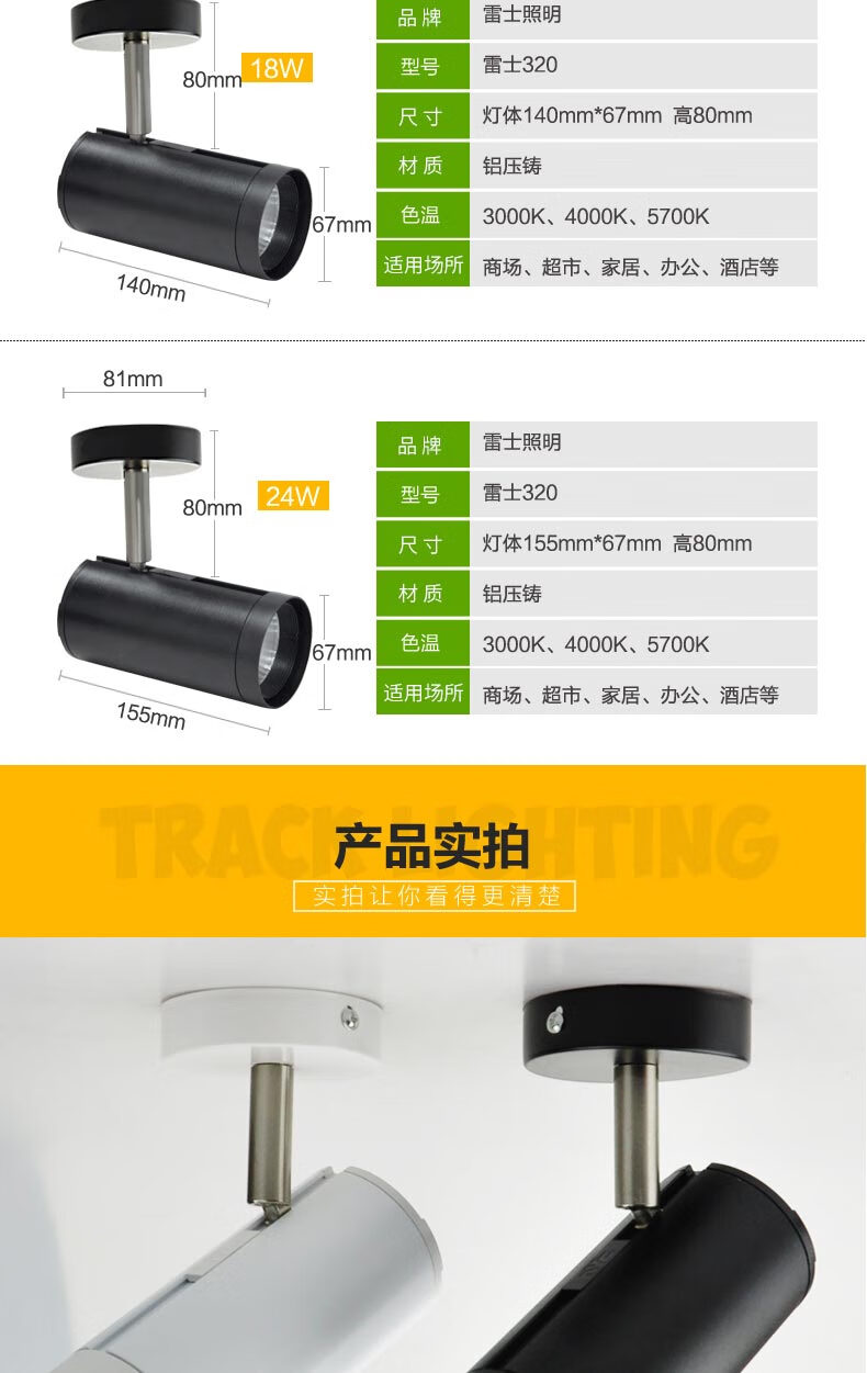 雷士 SLED320系列吸顶射灯 SLED320A 黑筒 暖白光 12W 140*67*80mm 1个