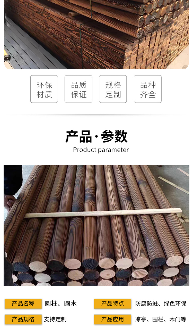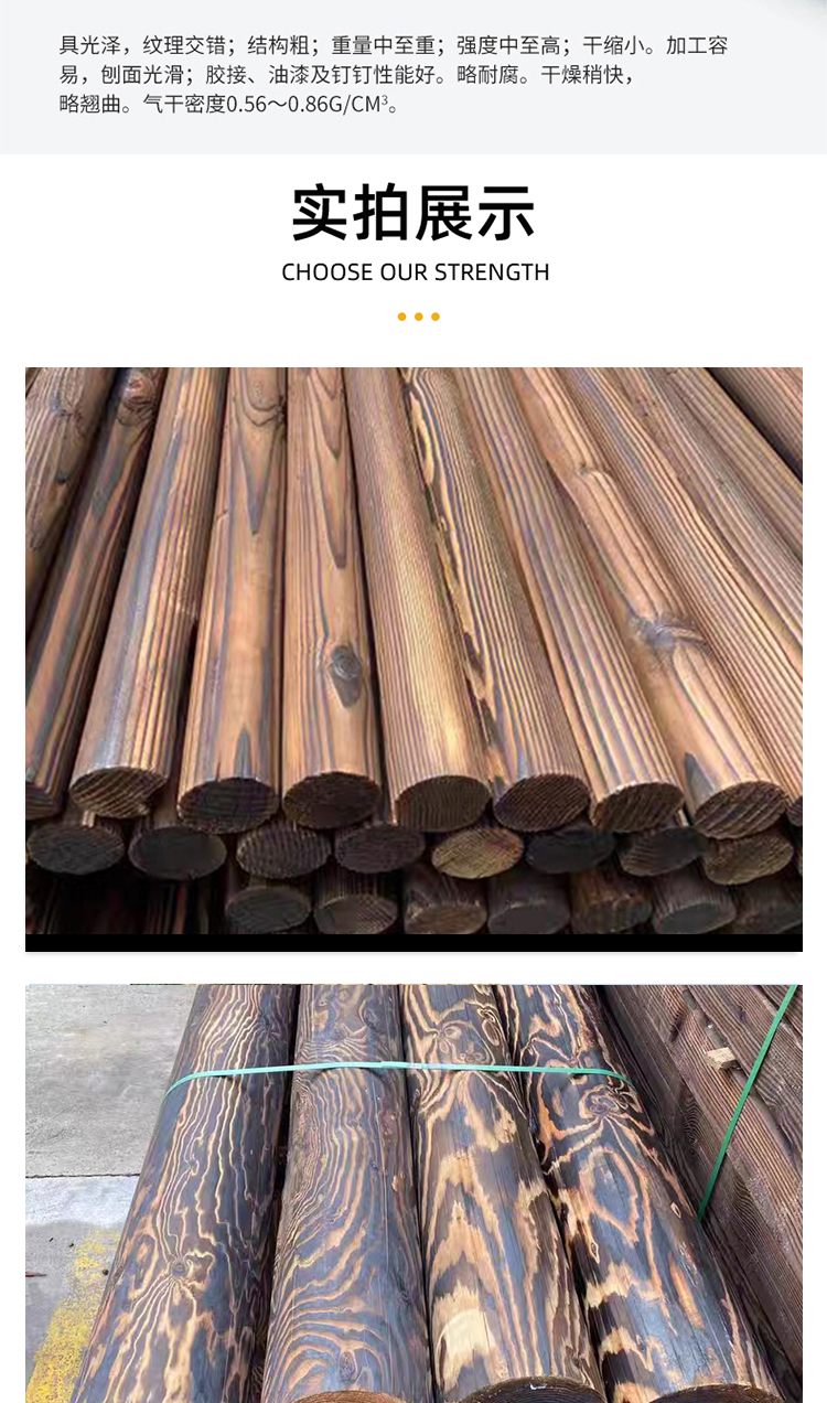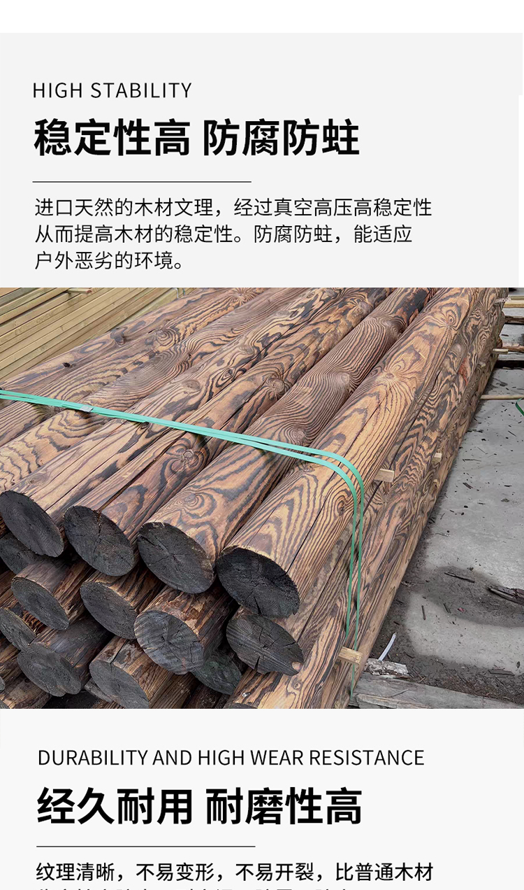 景宸 碳化圆松木棍 120×120×3000mm 1根