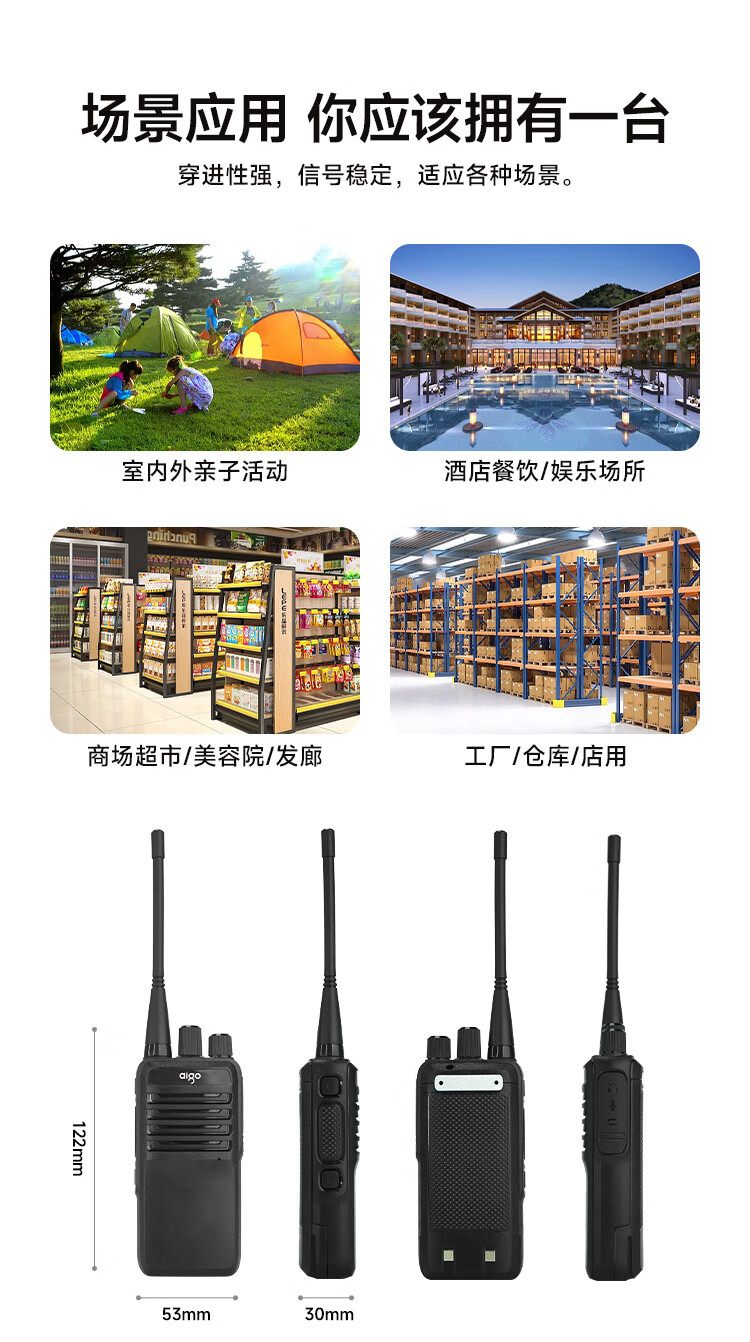 爱国者 模拟对讲机 E280 黑色 430-440MHz 2个 1件
