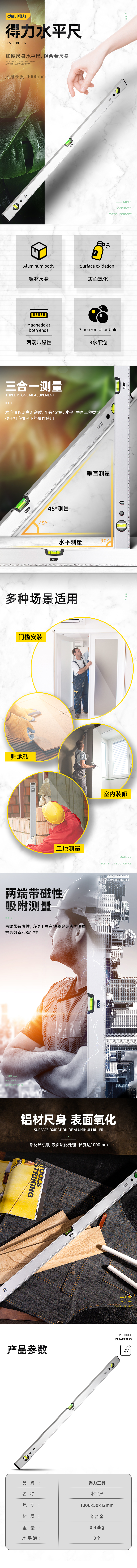 得力 水平尺 DL7001000B 白色 1000mm 1把