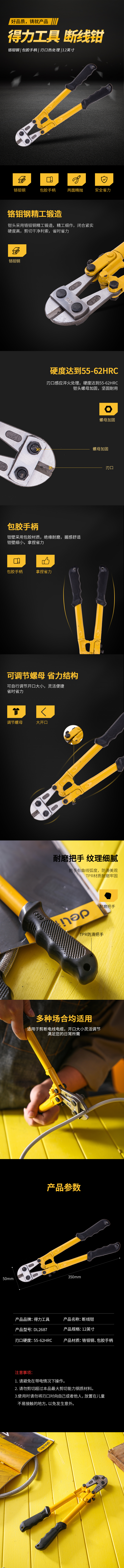 得力 断线钳 DL2687 黄色 12寸 钢材 1把