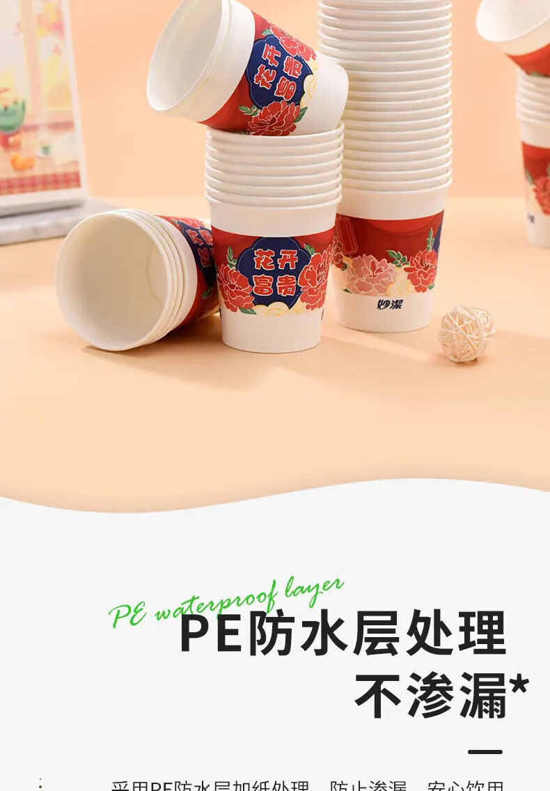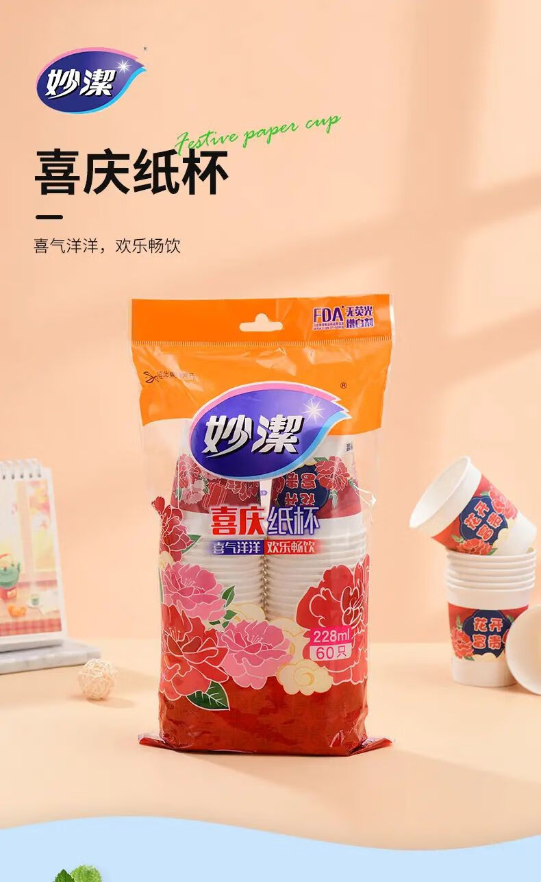 妙洁 一次性纸杯 喜庆装 228mL*60只 1包