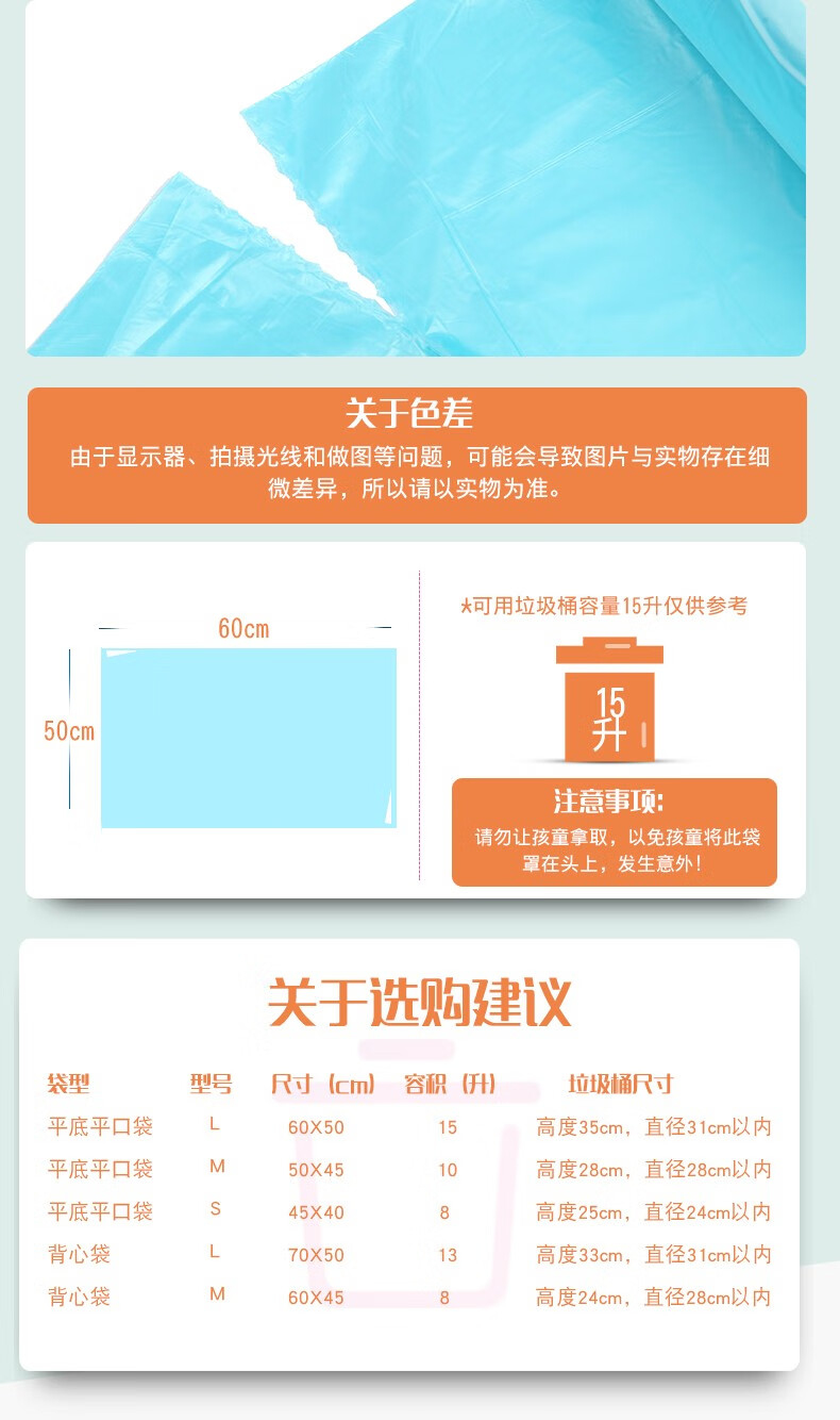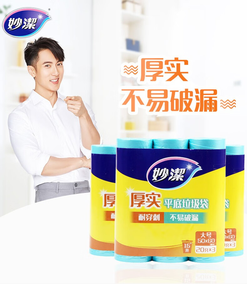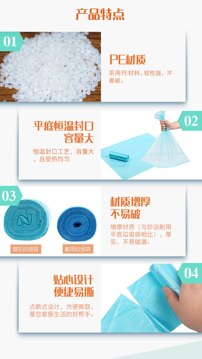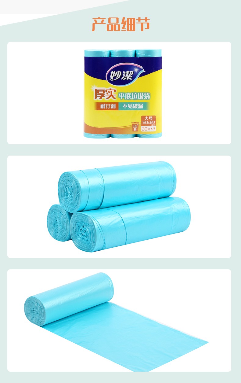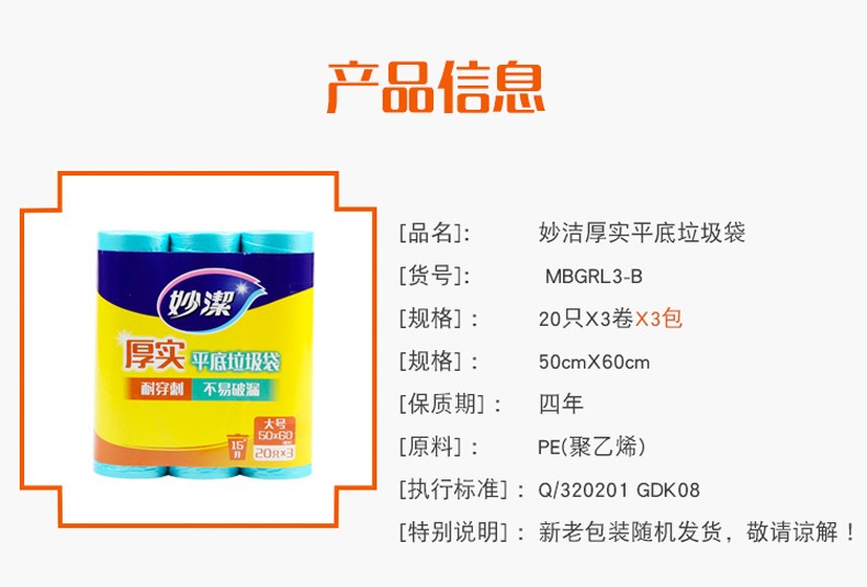 妙洁 厚实平底垃圾袋 MBGRMB3-B-B 中号 450×500mm 粉色/黑色随机发货 30只×3卷×20包 1件