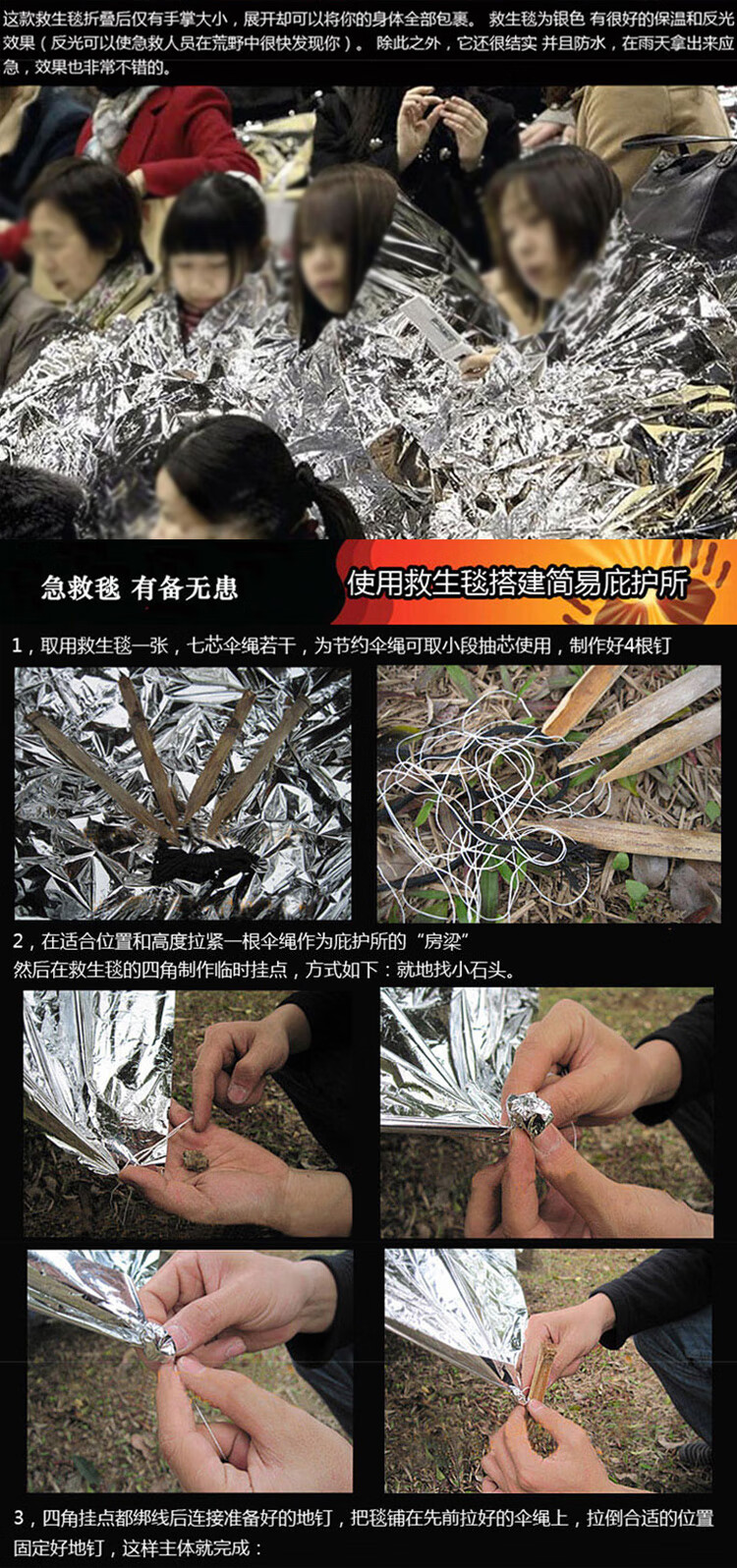 海斯迪克 多功能急救保温毯 HKWY-186 银色 140*210cm 1个