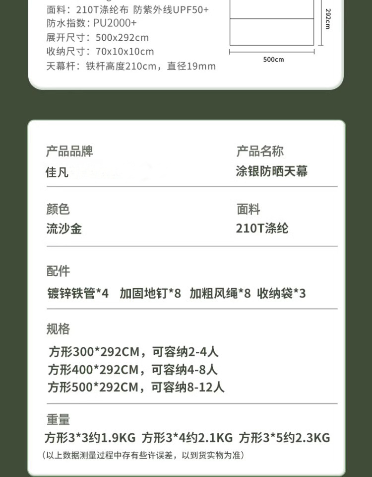 佳凡 野餐钓鱼帐篷防雨装备 3M*3M(2-4人) 1个