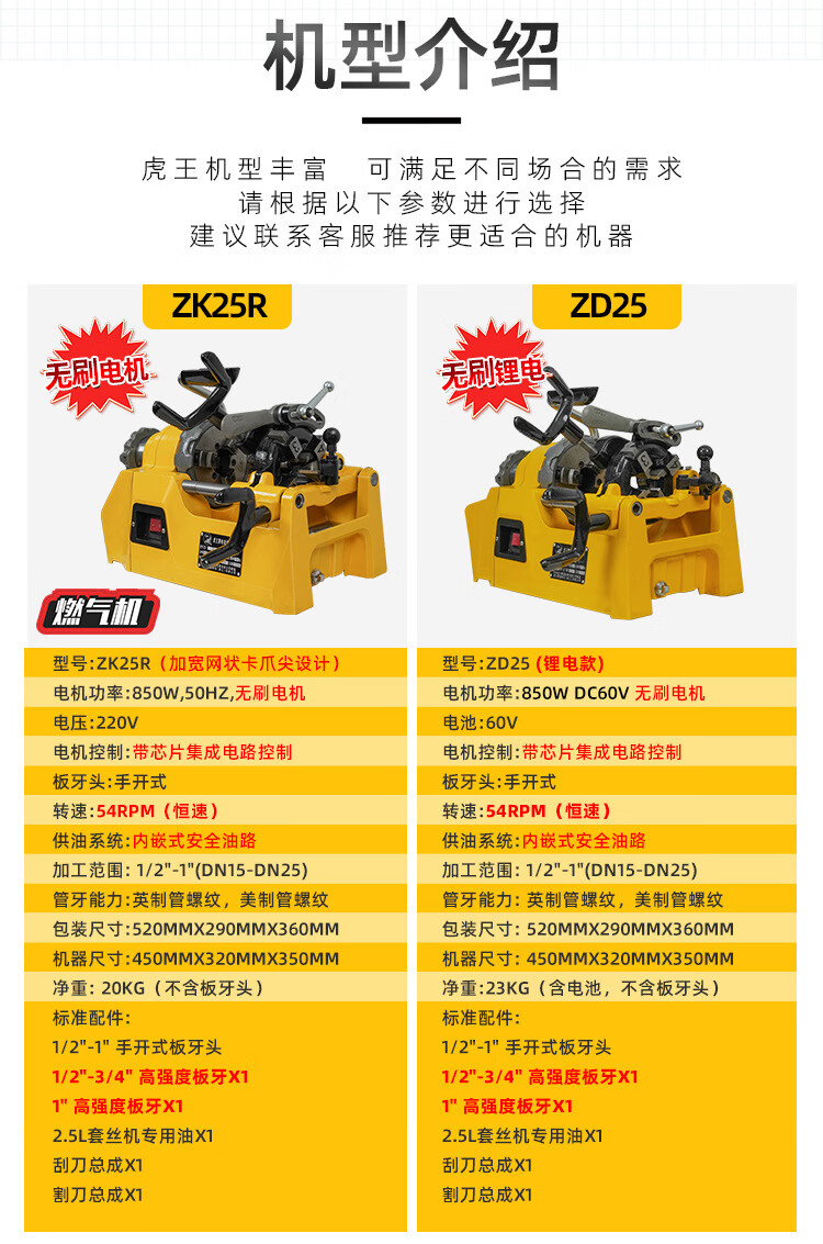 虎王 电动套丝机 ZK25R 850W 1/2"-1" (220V) 1台