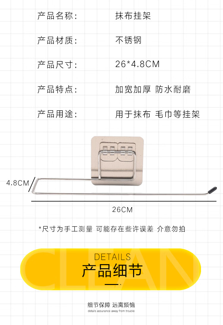 金诗洛 懒人厨房一次性清洁抹布挂架 K519 不锈钢 26*4.8cm 1个