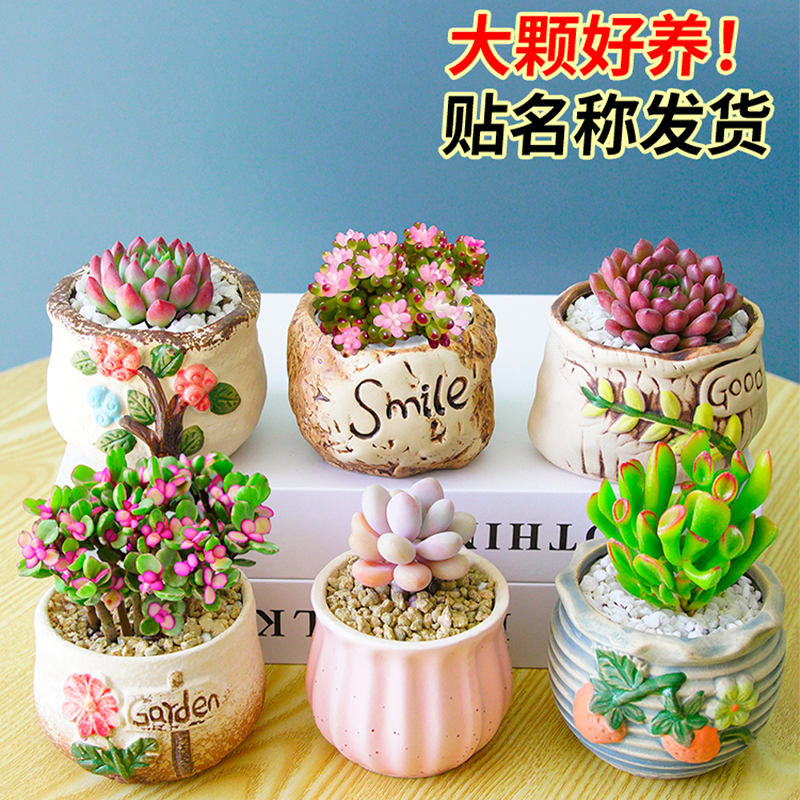 雨不停 多肉植物组合 新手6盆套餐 送标签+托盘+工具 带陶瓷花盆土 1套