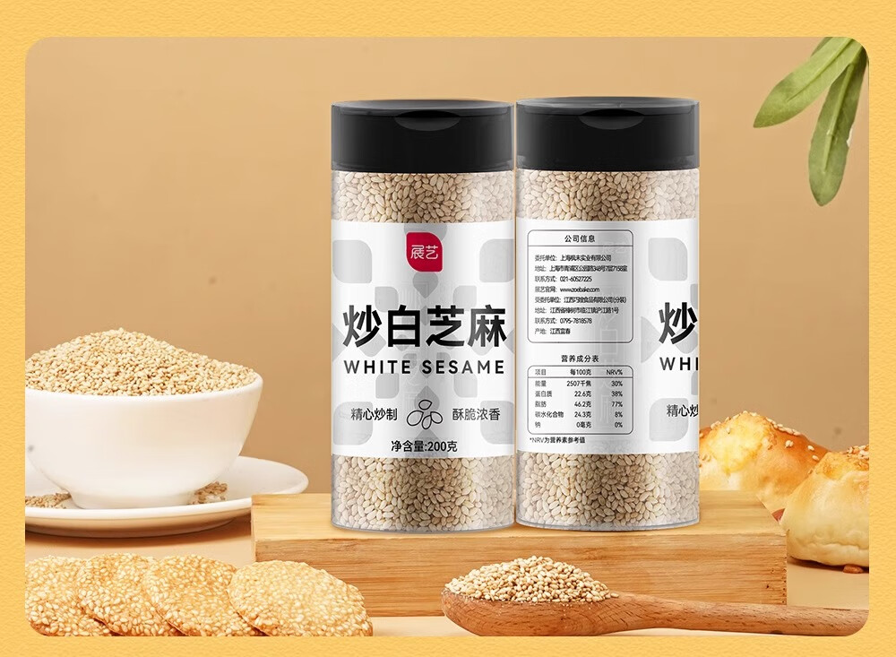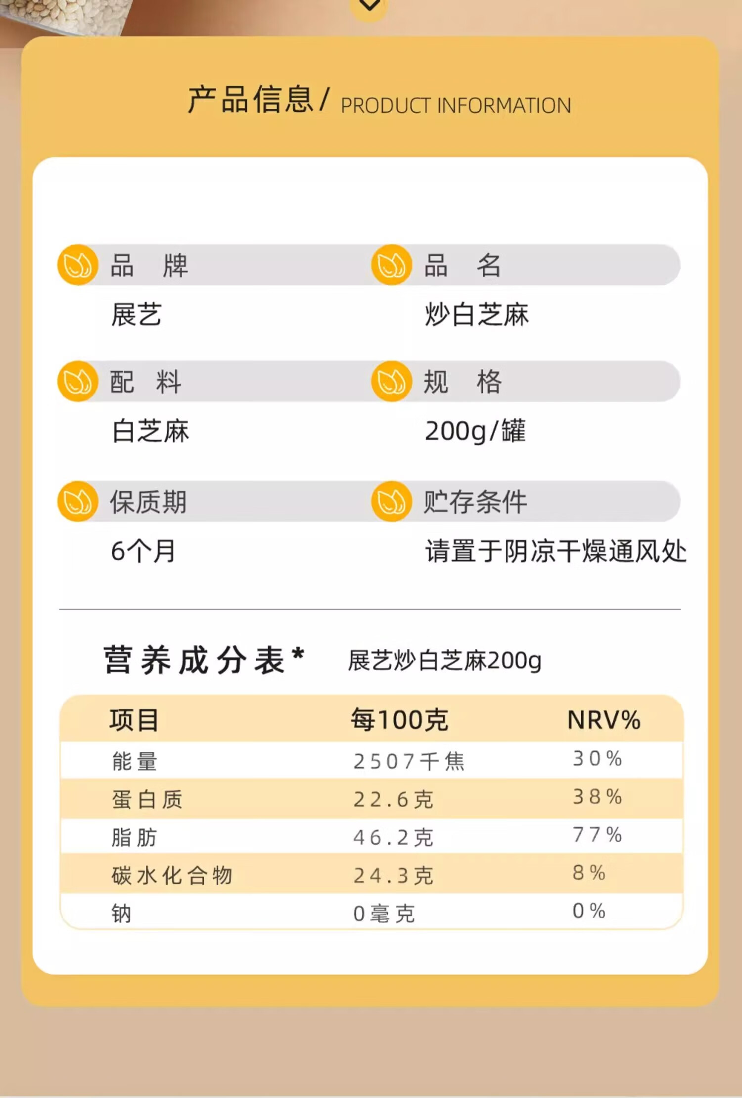 展艺 即食调料烘焙组合 白芝麻200g+黑芝麻200g 2瓶 1套