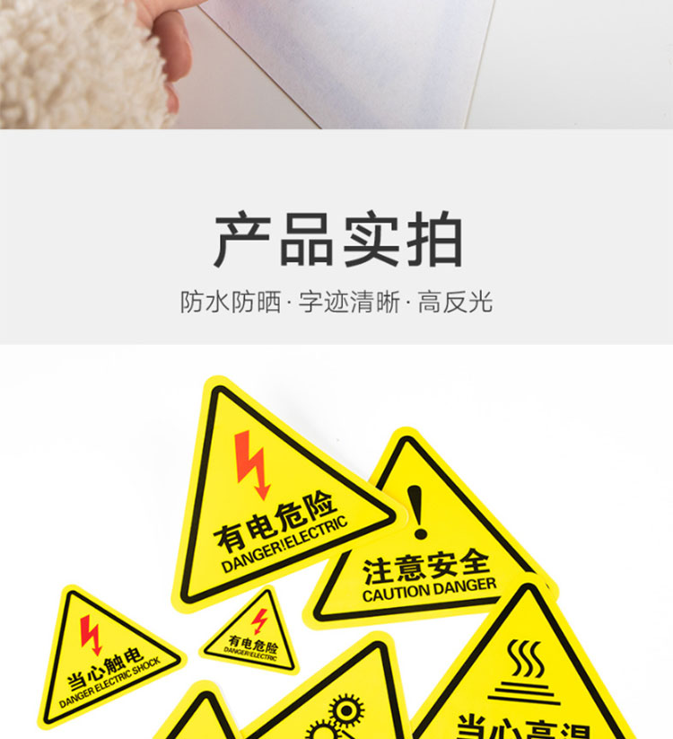 冰禹 三角警示贴 BYll-165 当心机械伤人 黄底黑字 PVC 8×8×8cm 1张
