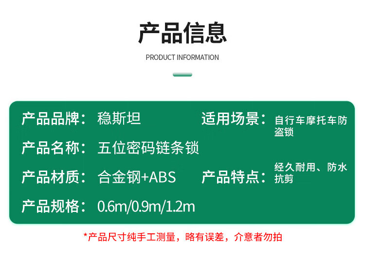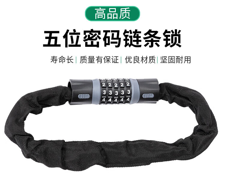 稳斯坦 五位密码链条锁 W7102 黑灰直头1.2m 1个