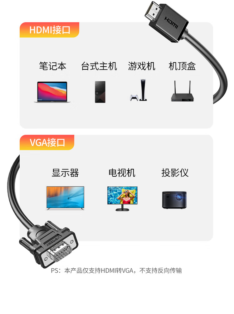 绿联 HDMI转VGA高清转换线 15968 1m 1个