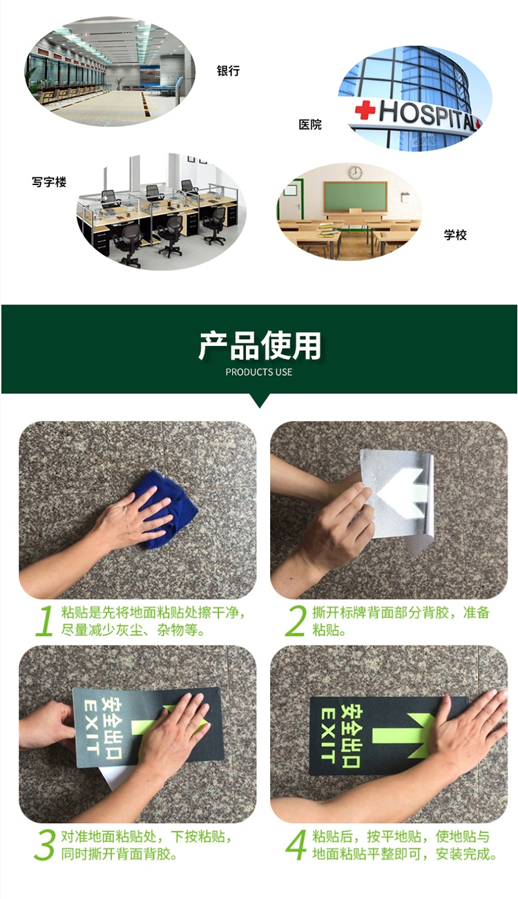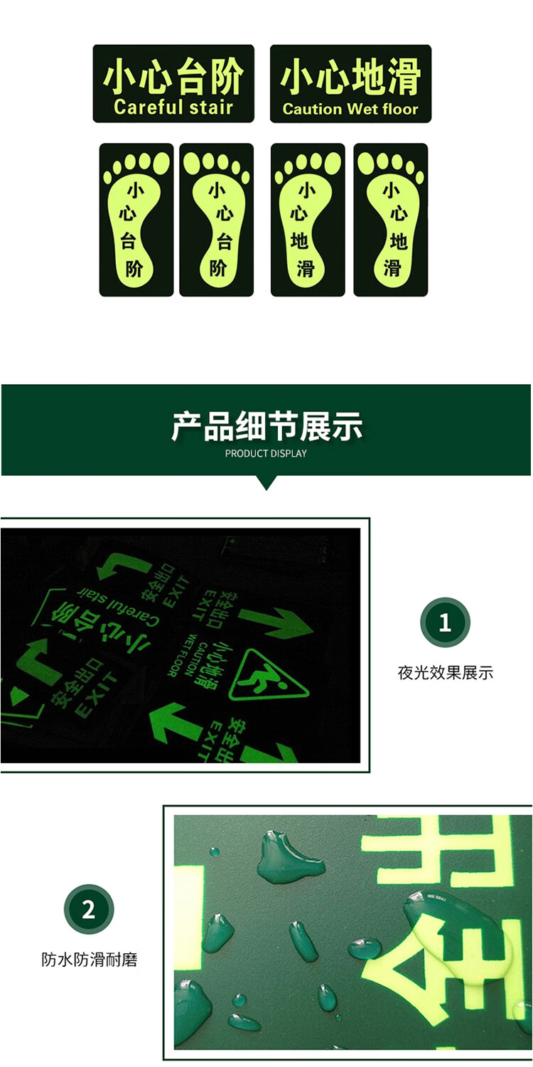 金诗洛 PVC夜光地贴 KSL213 14.5*29.5cm 小心台阶C-39 2个 1件