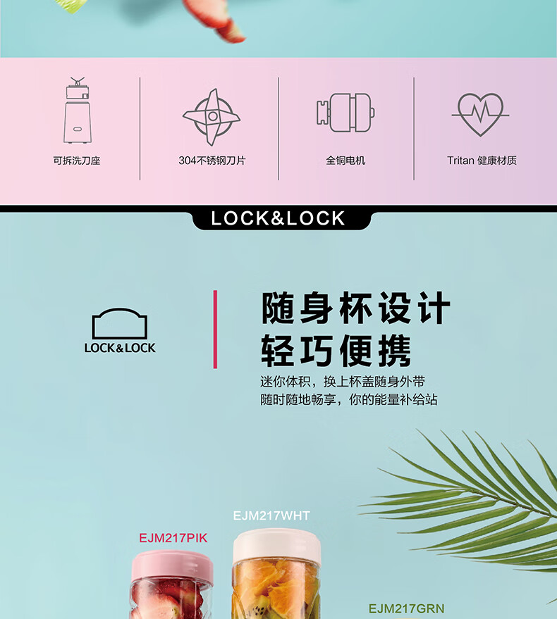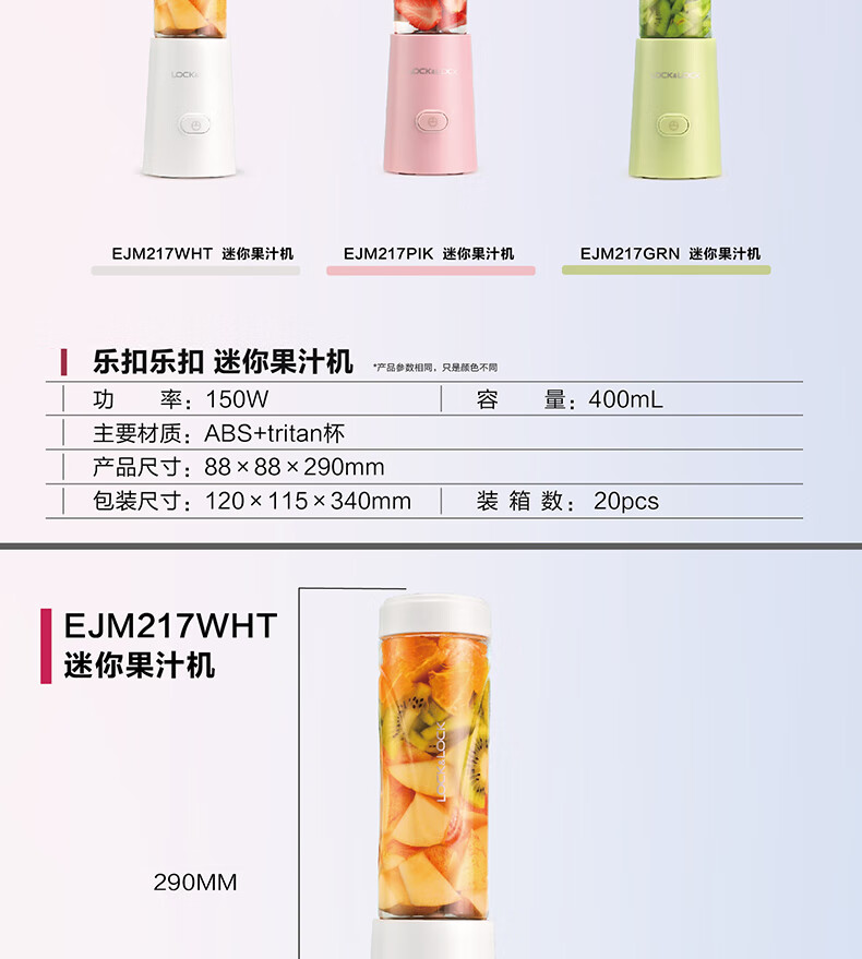 乐扣乐扣 高速榨汁机 EJM217WHT 白色 400mL 1个