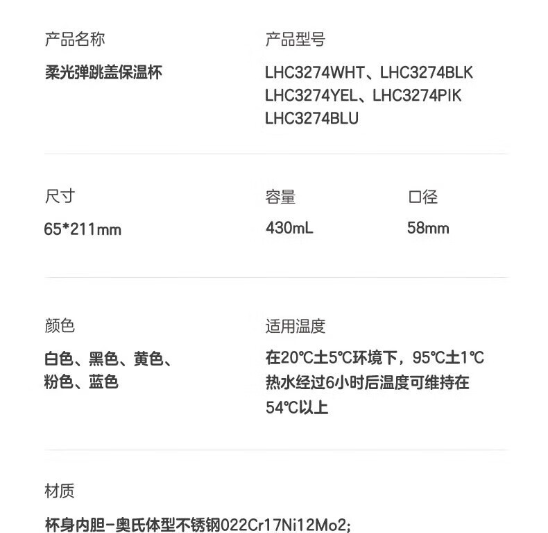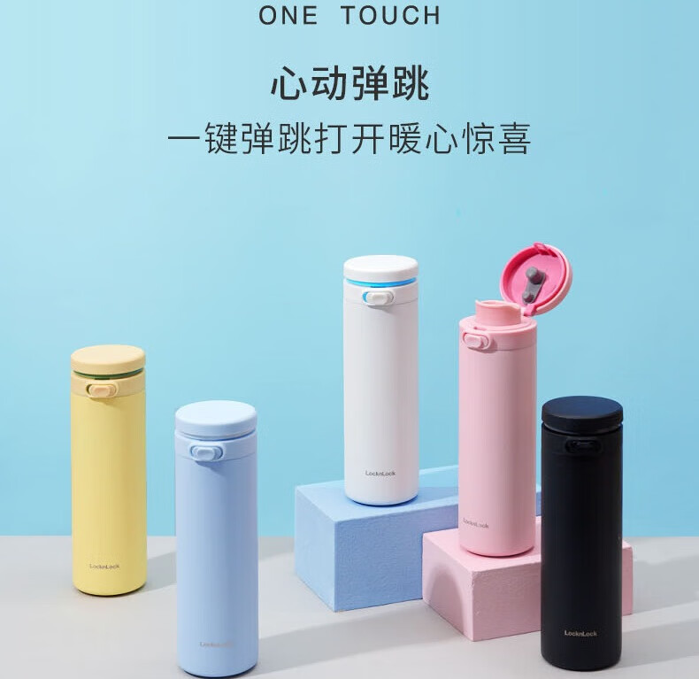 乐扣乐扣 一键开盖水杯 LHC3274BLK 黑色 430mL 1个