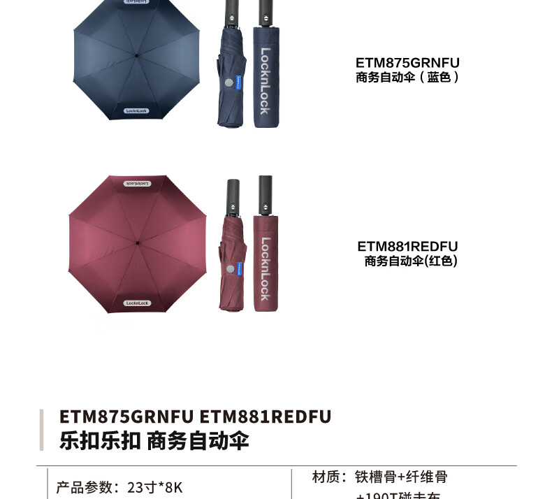 乐扣乐扣 自动遮阳伞 ETM875GRNFU 蓝色 1个