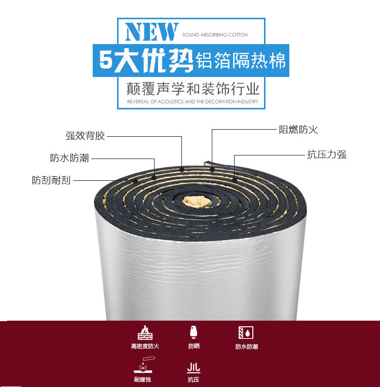 海斯迪克 铝箔隔热棉 HKW-42 丁晴橡胶 10平方米 10mm加强网格铝箔加背胶 1卷
