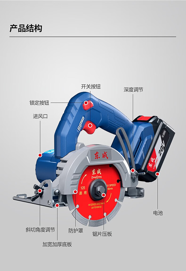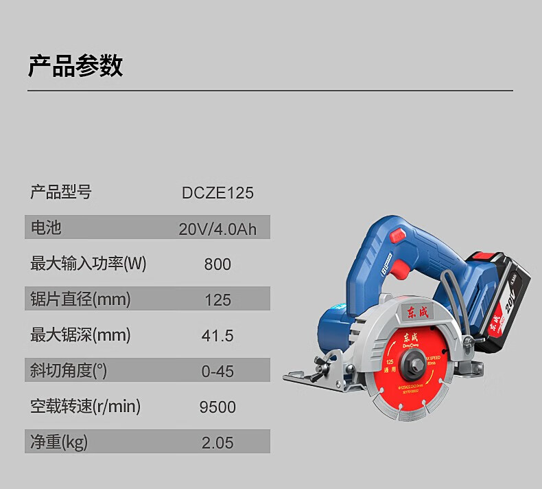 东成 无刷充电式切割机 DCZE125B 20V 4.0Ah 两电一充 1套