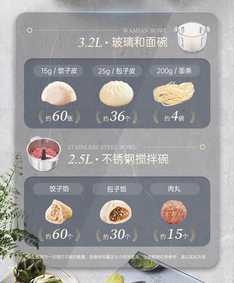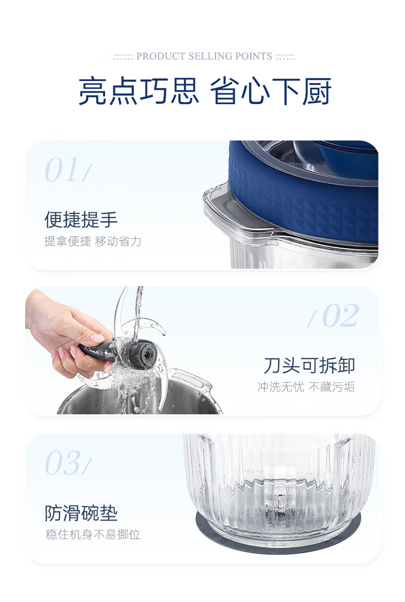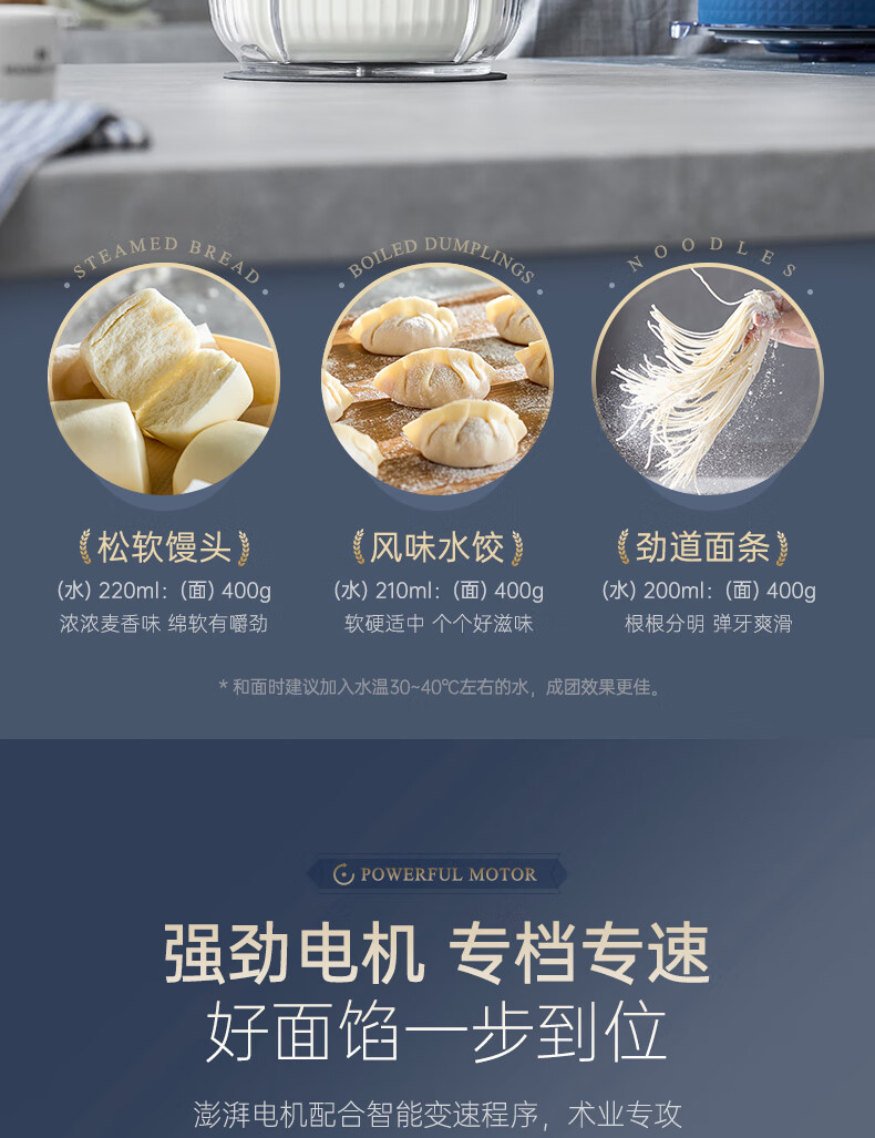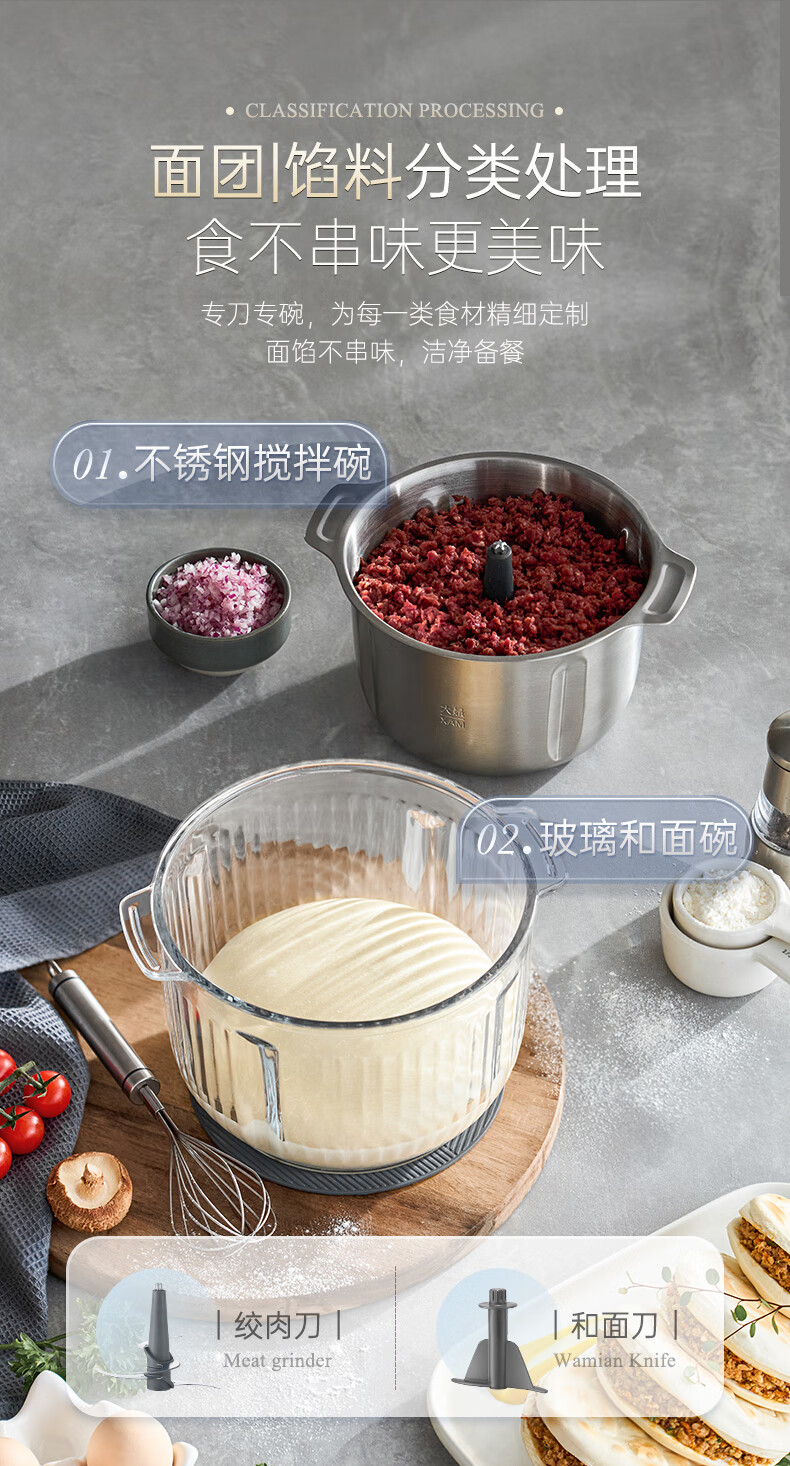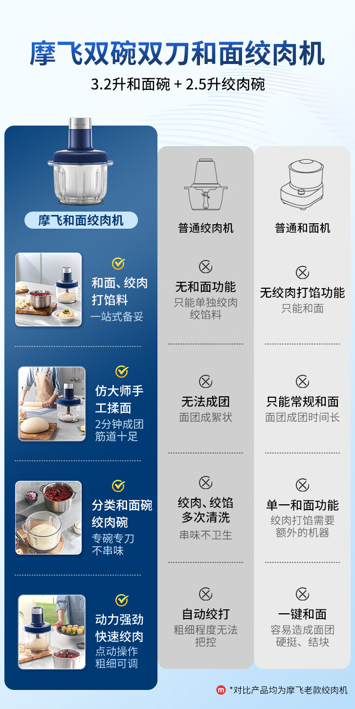 摩飞电器 绞肉和面一体机 MR9407 经典蓝 3.2L+2.5L 两碗款 1个