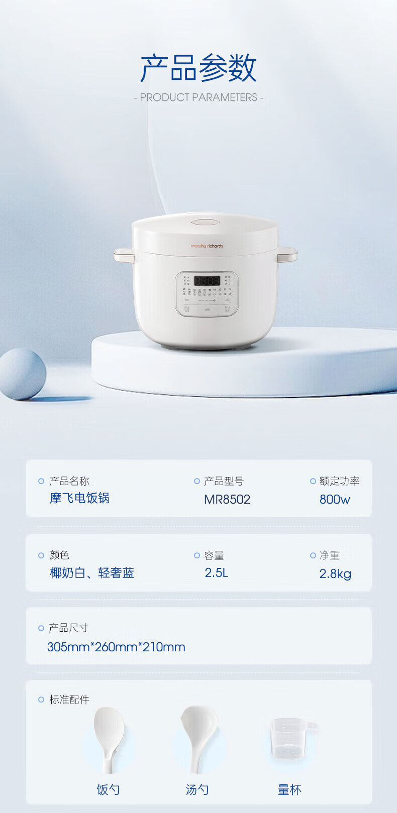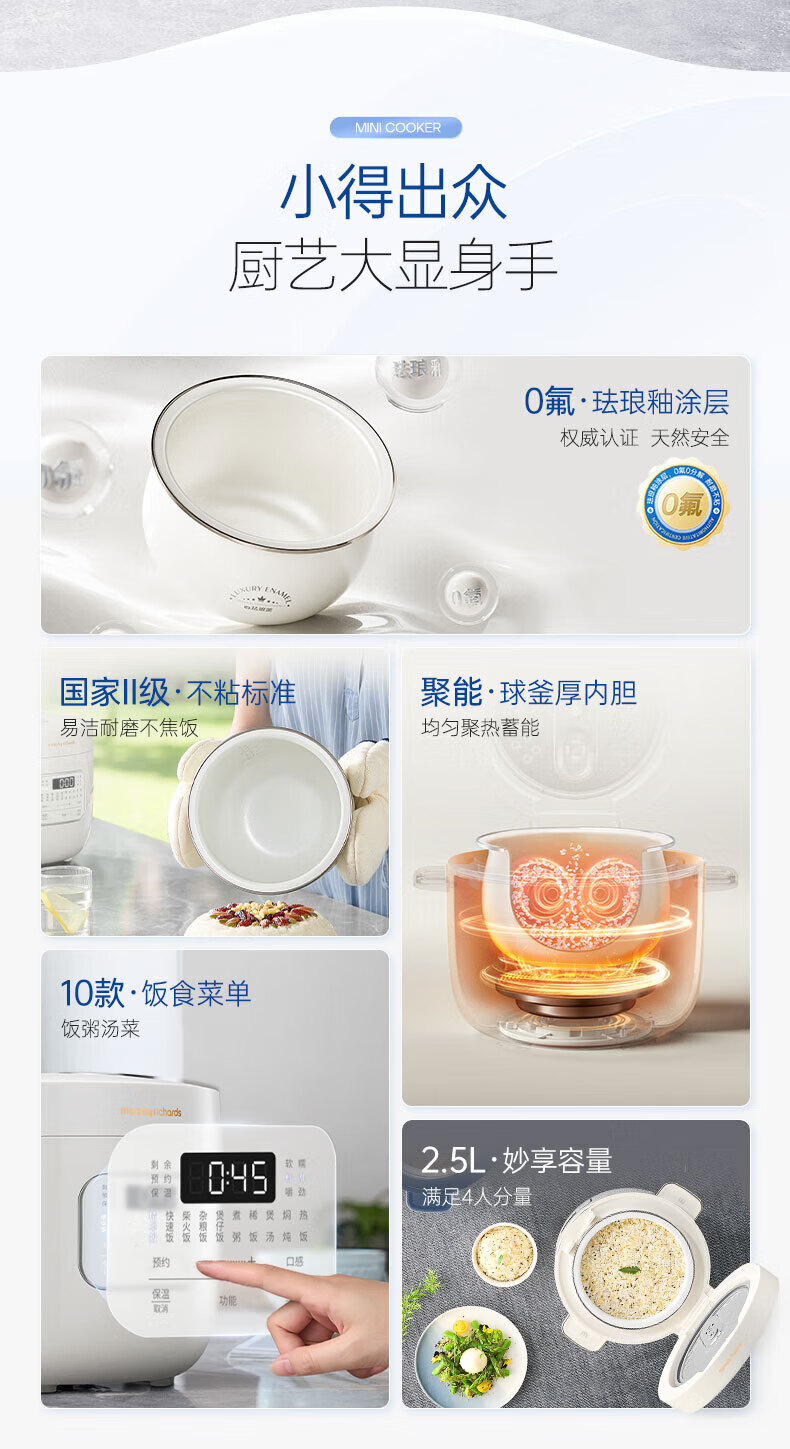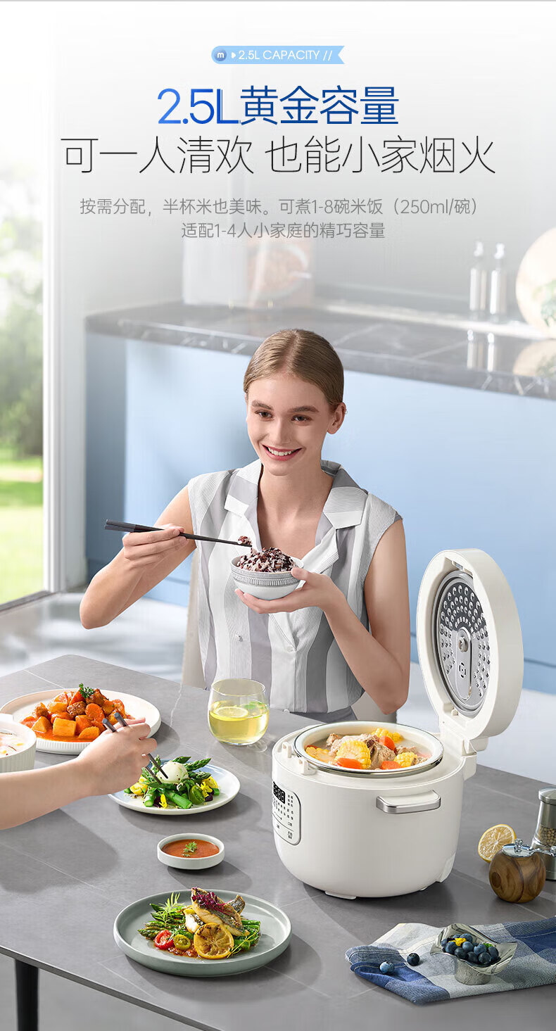 摩飞电器 多功能迷你电饭煲 MR8502 白色 2.5L 1个