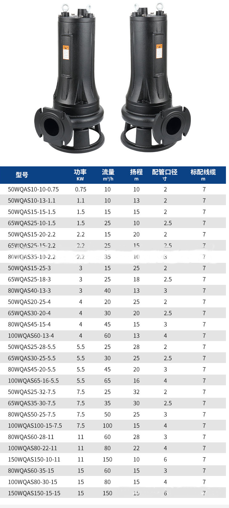 金貂 WQAS切割排污泵 50WQAS10-12-1.1 1.1kW 380V 三相 1台