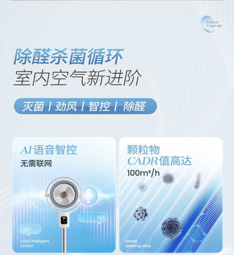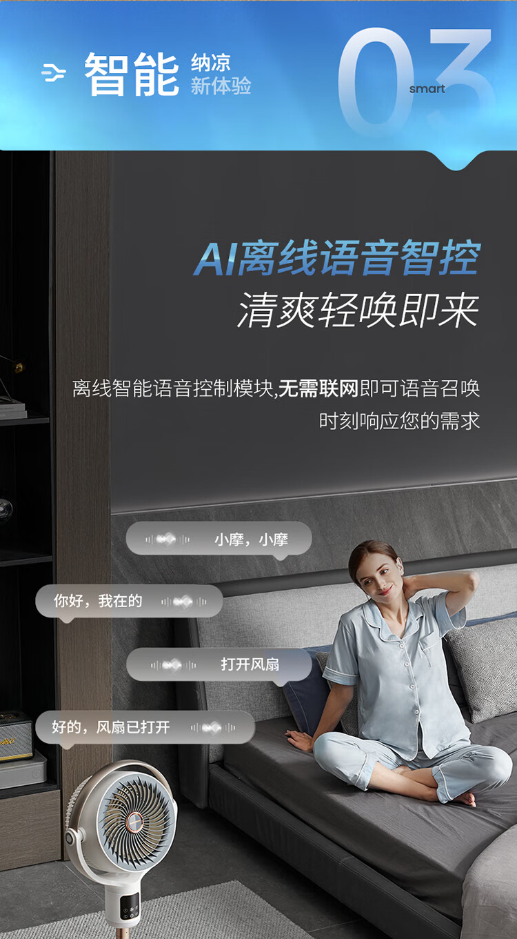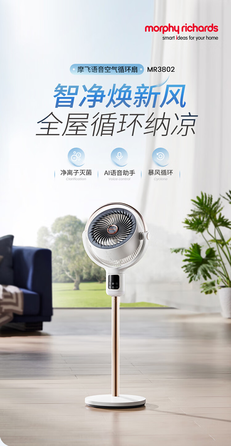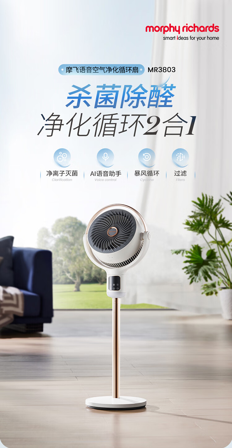摩飞电器 语音空气立式循环扇 MR3803 24W 升级款(HEPA滤网除甲醛) 1个